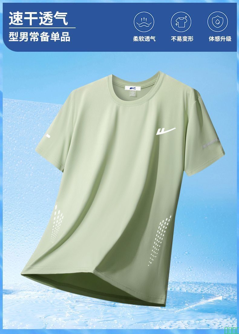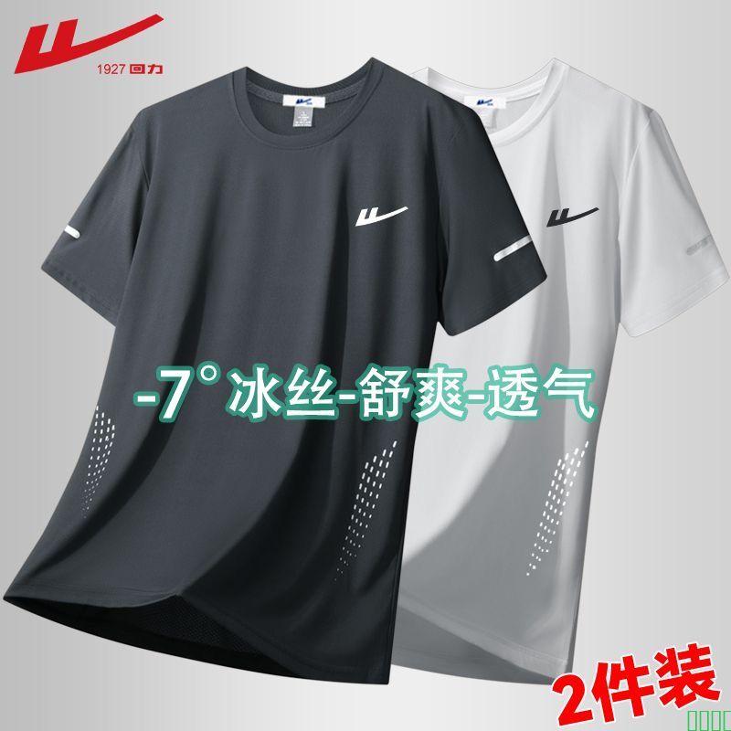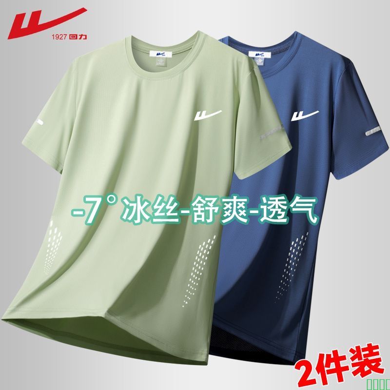 回力夏季冰丝新款薄款短袖T恤男士圆领速干宽松透气休闲运动上衣