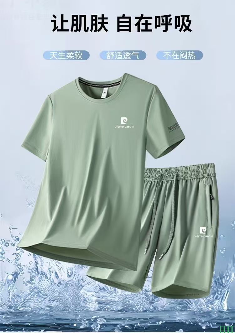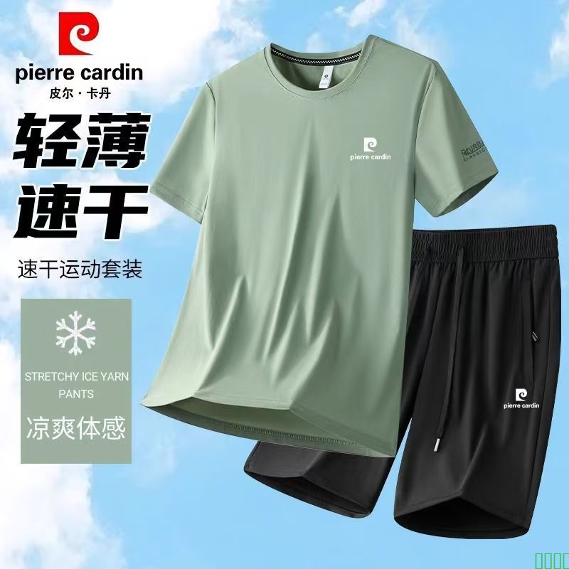 皮尔卡丹高端T恤运动套装男2025夏季薄款透气速干衣跑步服两件套