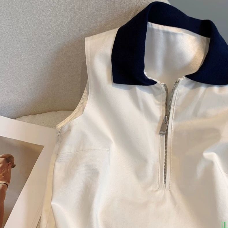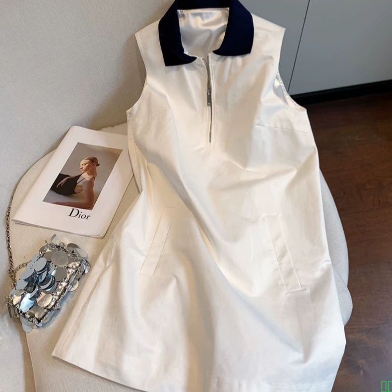 老钱风白色polo领无袖连衣裙女 2025年新款 气质甜美休闲背心裙子