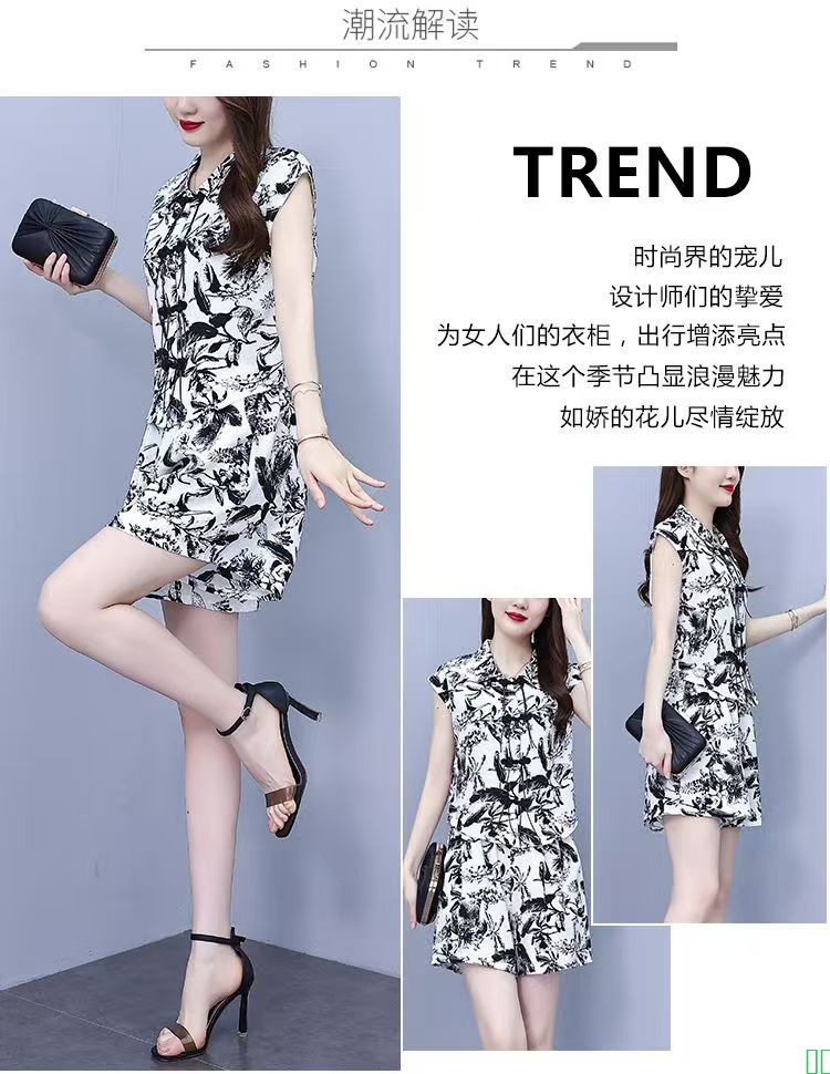 灰波点短袖连衣裙女夏2024新款系带韩版宽松简约时尚大气清凉