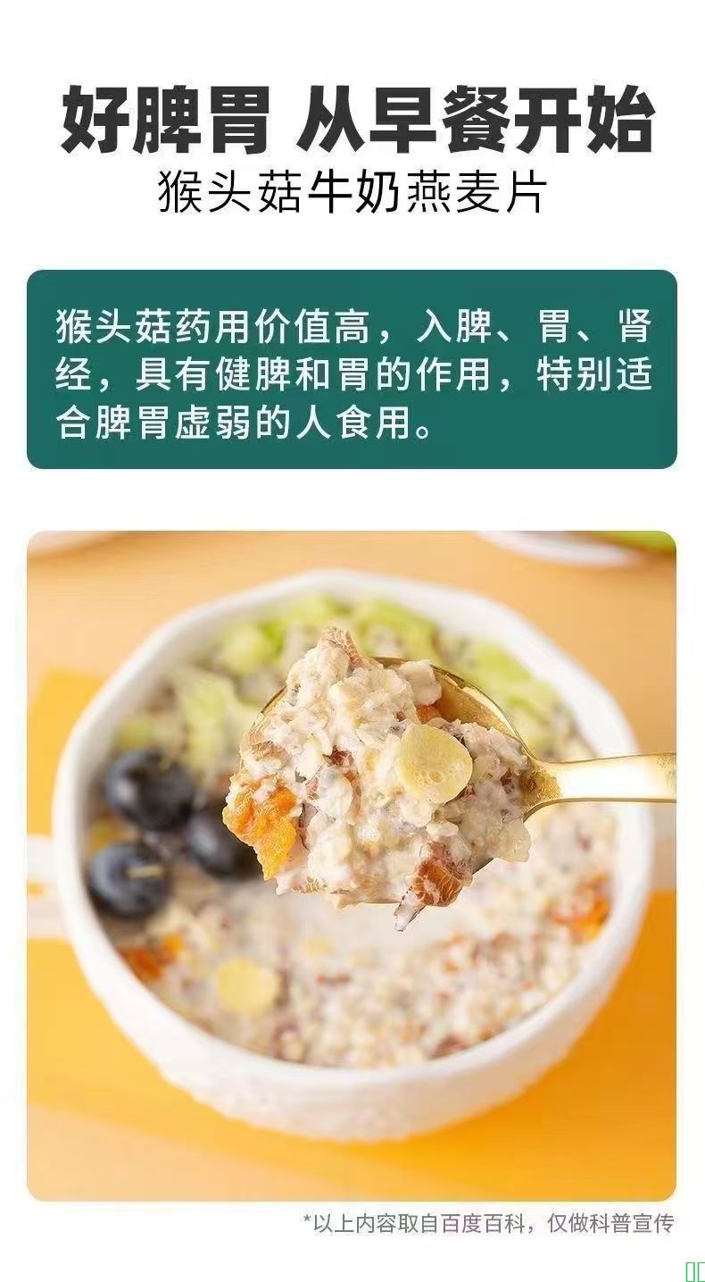 养胃猴头菇牛奶燕麦片冲泡免煮早餐代餐胃胀反酸烧心营养食品袋装