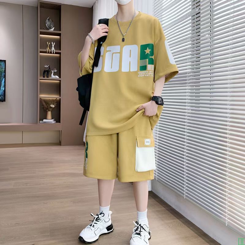 SL09夏季休闲运动套装男大码酷帅气一整套衣服搭配短袖短裤两件套