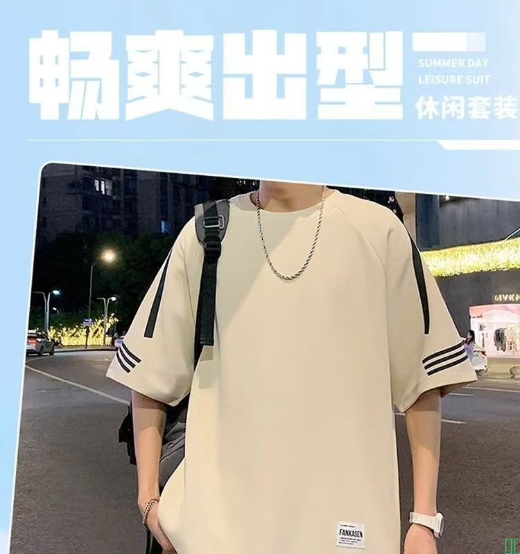 QM95休闲运动套装男夏季大码宽松短袖t恤胖子短裤搭配帅气一整套