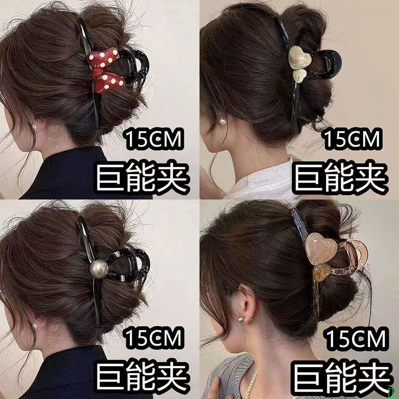 2025新款15cm超大爱心蝴蝶结高级甜美鲨鱼发夹后脑勺抓夹大号