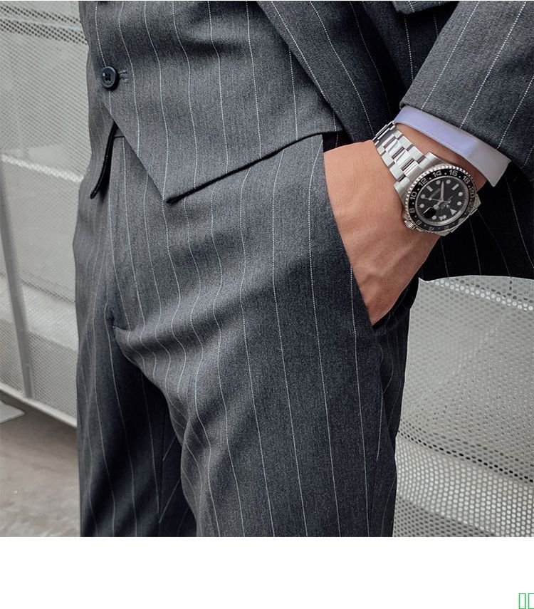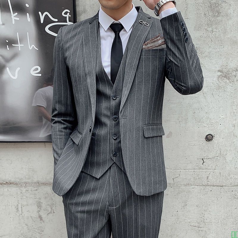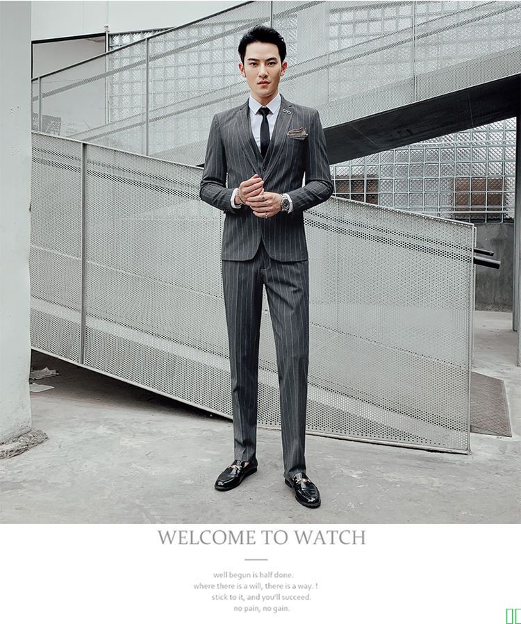 条纹西服套装男士英伦风商务帅气青年正装韩版新郎伴郎修身小西装