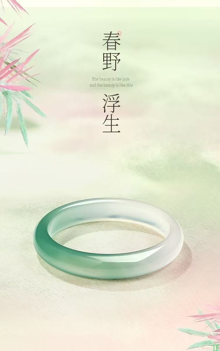 老凤祥半山半水新中式翠绿手镯冰种琉璃猫眼石镯子七夕礼物送女友
