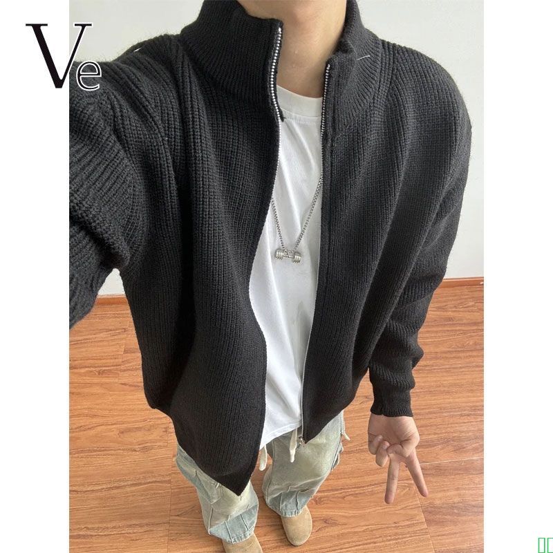 VE拉链立领针织开衫夹克毛衣男秋冬季加厚纯色内搭修身打底衫外套