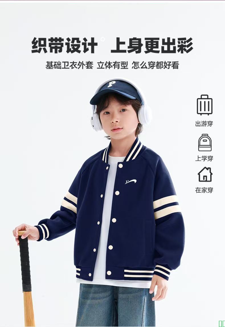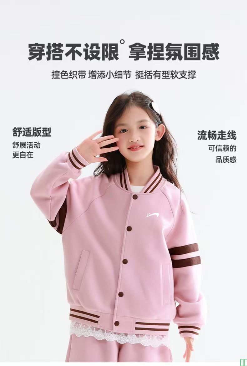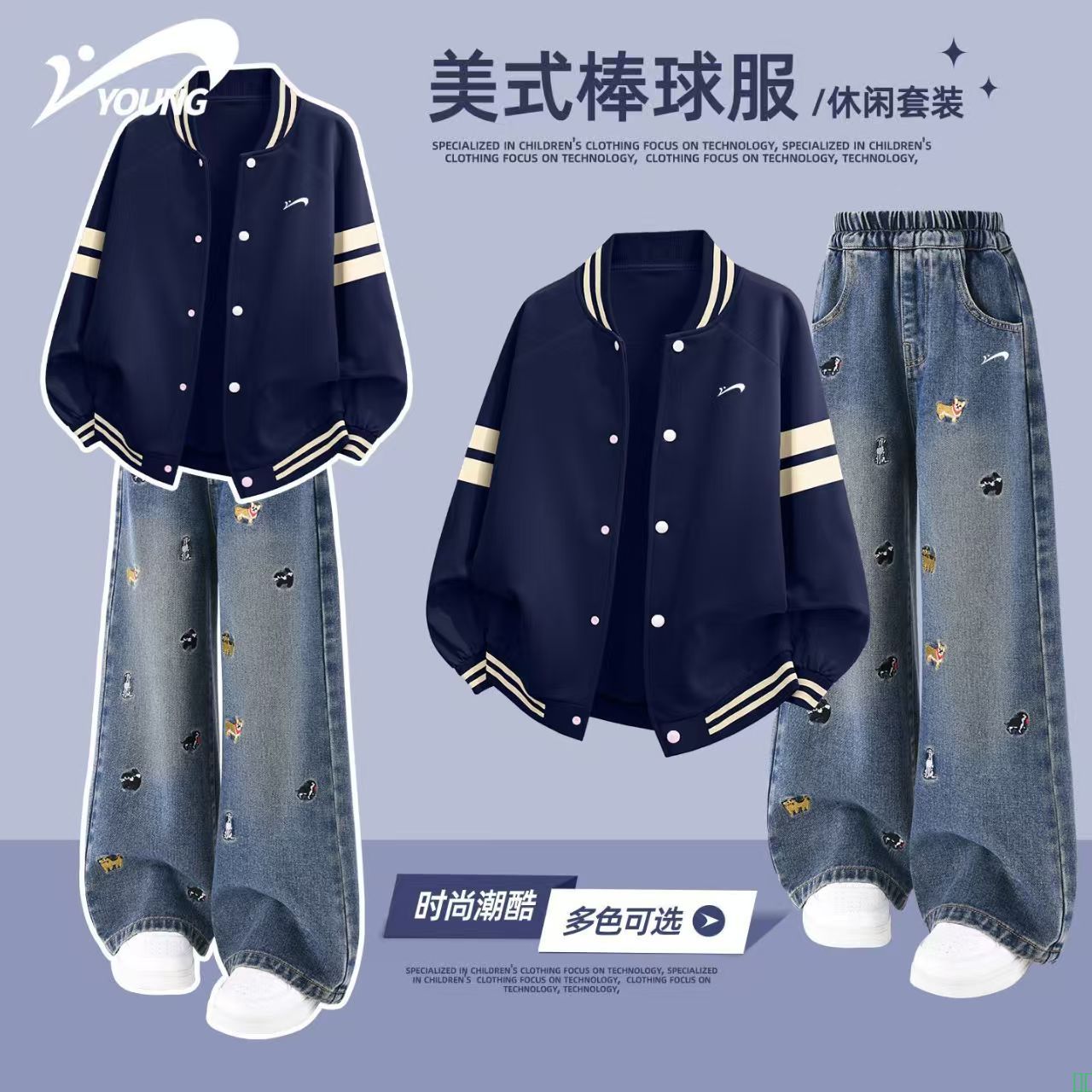 贵人鸟女童套装秋装2025新款儿童美式棒球服外套女孩童装牛仔裤子