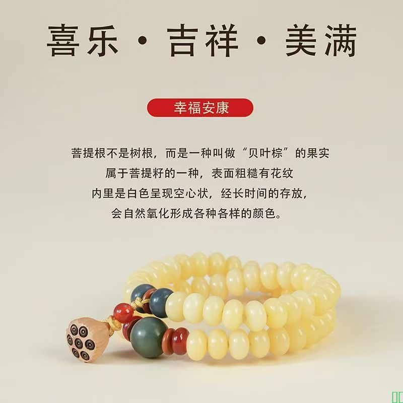 普陀山天然国风原创奶豆菩提手串女天然精致好运佛珠文玩念珠手链