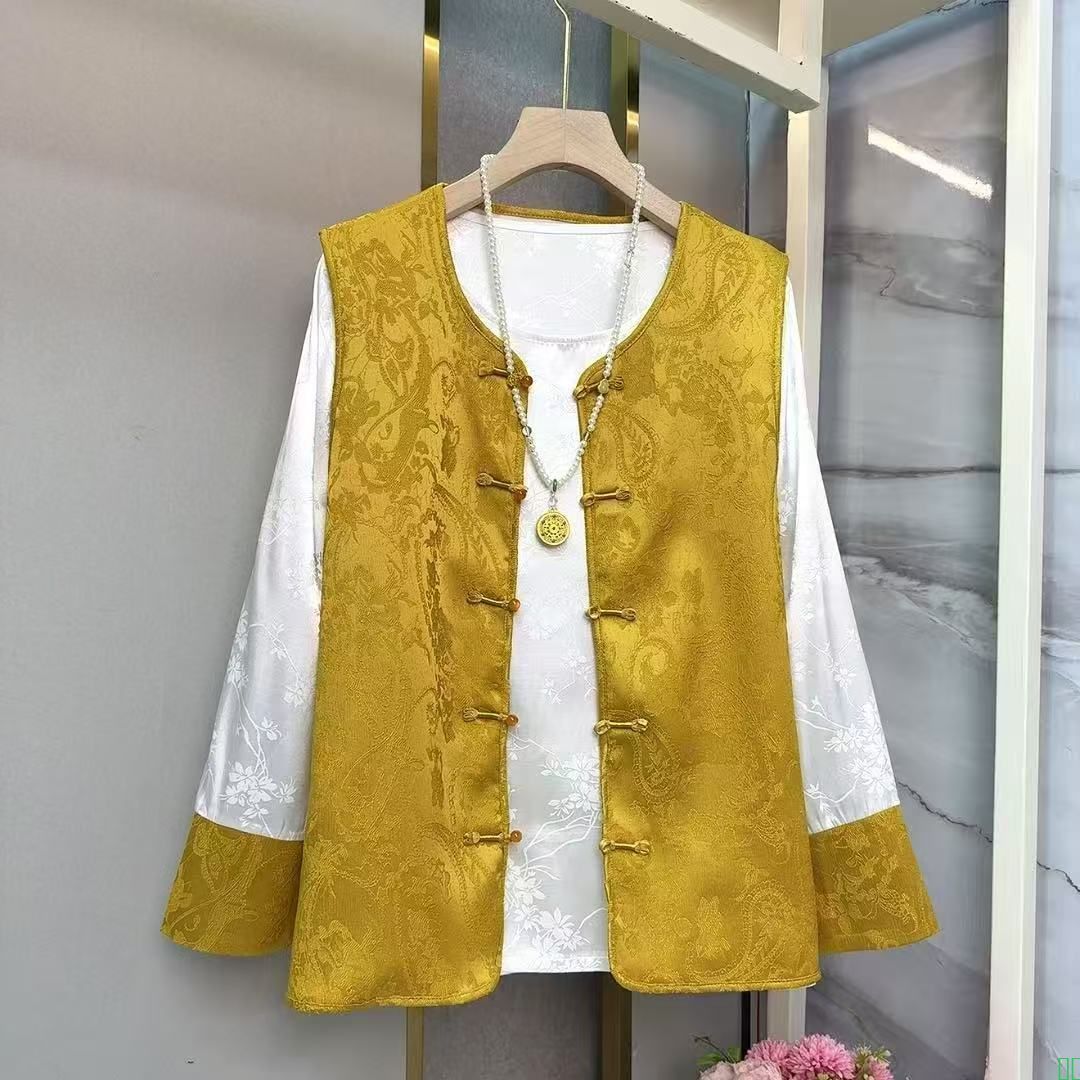 大码女装中式复古2025马甲套装叠穿薄款上衣两件套超仙提花轻奢潮