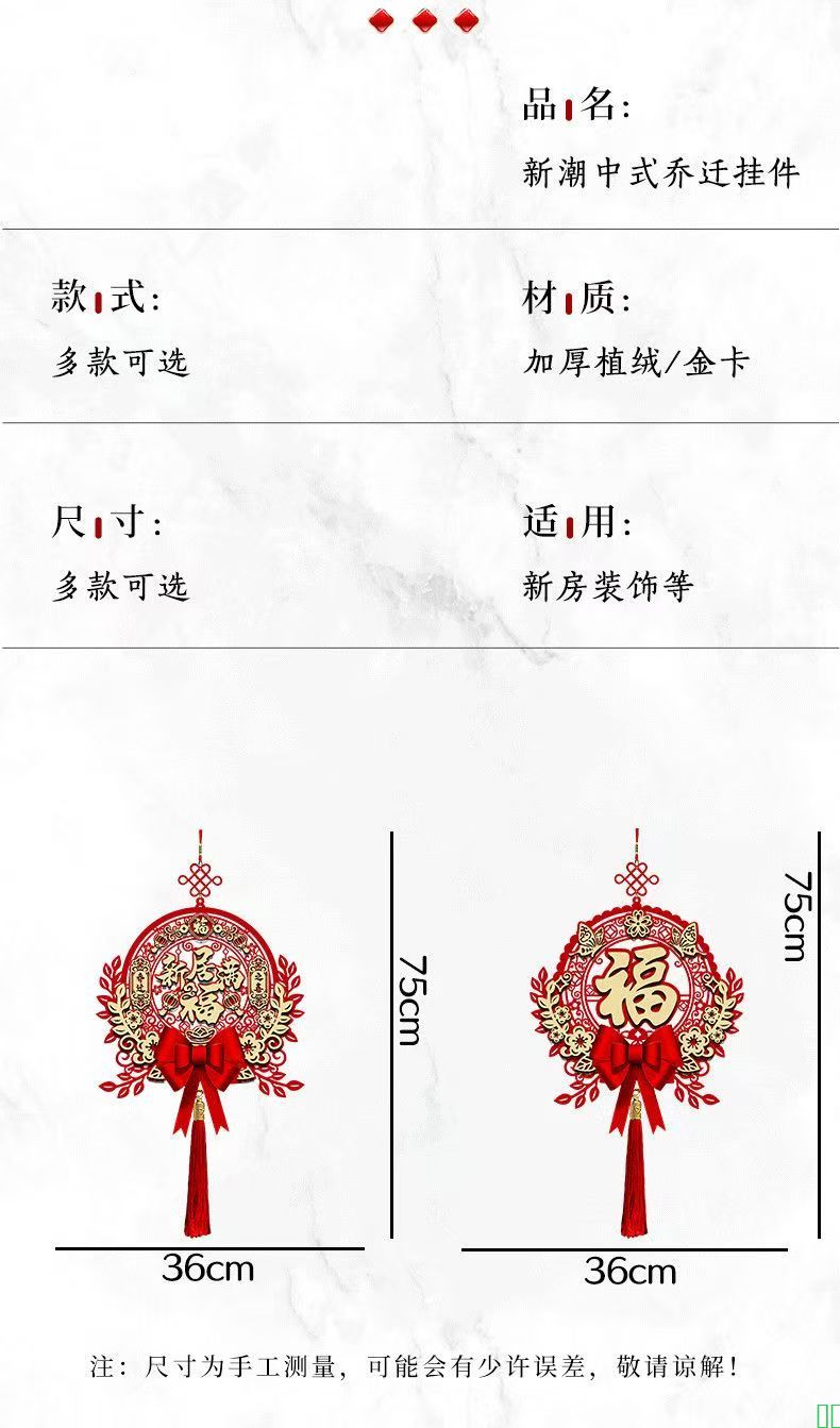 乔迁之喜福字挂件装饰新居客厅门挂布置新家搬家大门入宅仪式用品