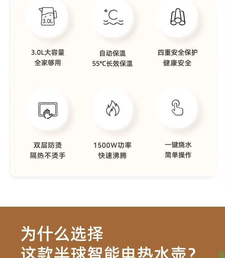 半球电热水壶不锈钢防烫保温家用宿舍水壶大容量快壶自动断电