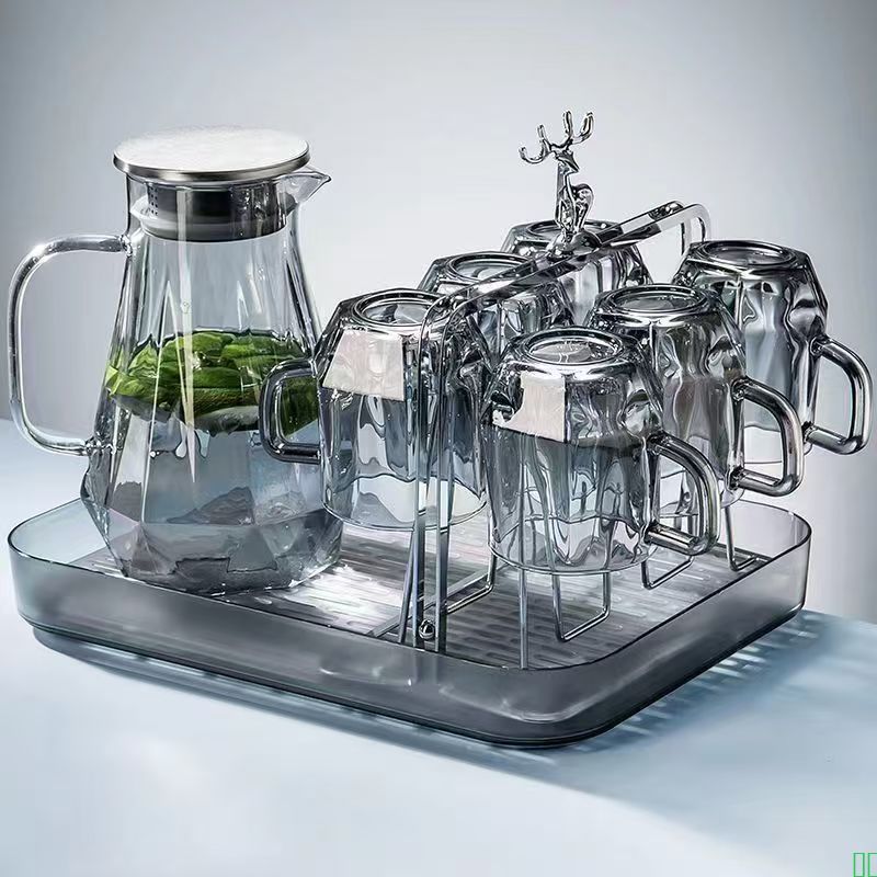 北欧高档耐高温钻石茶壶玻璃水杯客厅水壶杯子杯架轻奢家用套装