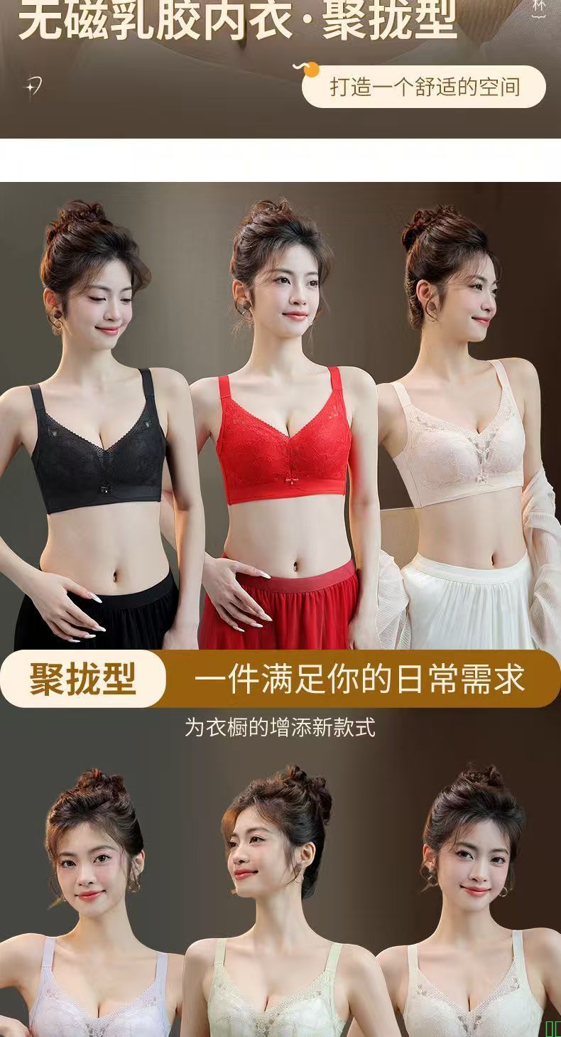黛梦思乳胶内衣女薄款聚拢小胸收副乳防下垂无钢圈美背文胸罩夏