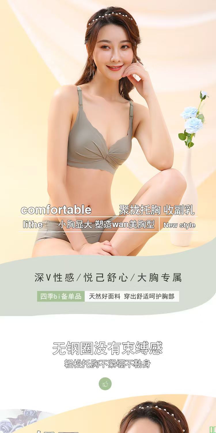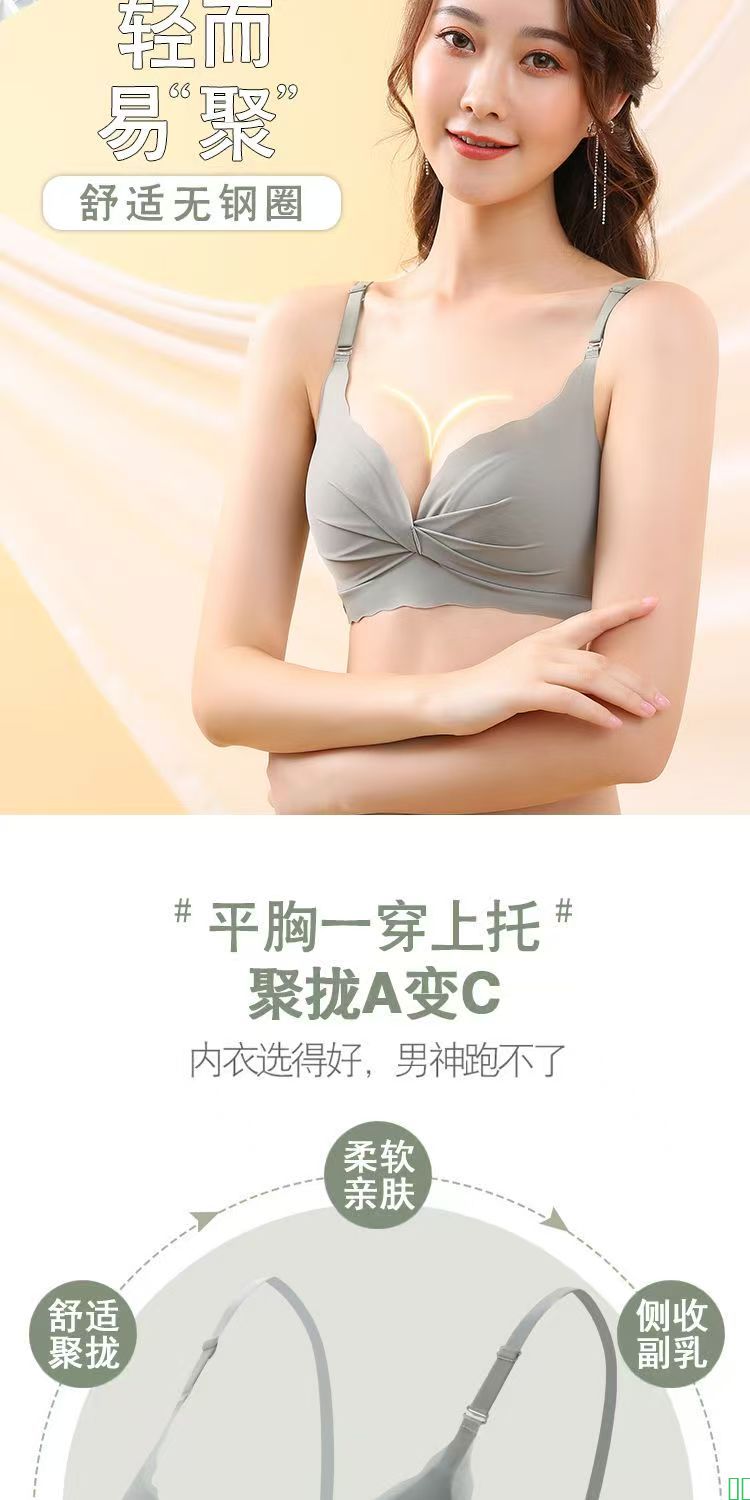 无痕内衣女聚拢收副乳防下垂性感无钢圈轻薄舒适花边调整型文胸罩