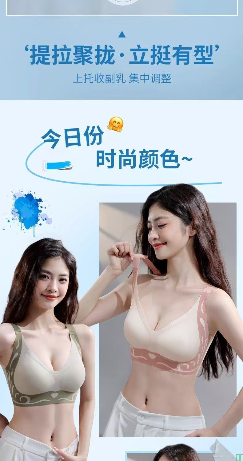 无痕提拉美背内衣女大胸显小无钢圈收副乳托防下垂运动背心文胸罩