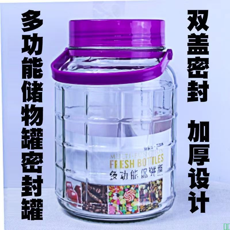 方格玻璃加厚家用储存瓶五谷杂粮食品储物罐大容量无铅蜂蜜罐