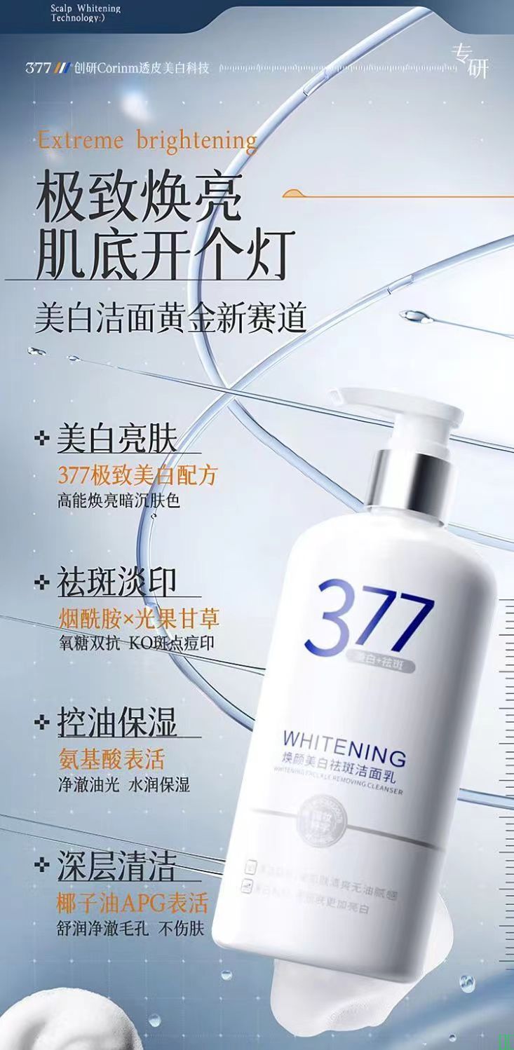 【旗舰正品】377美白祛斑洗面奶去黄黑氨基酸深层清洁抗痘洁面乳
