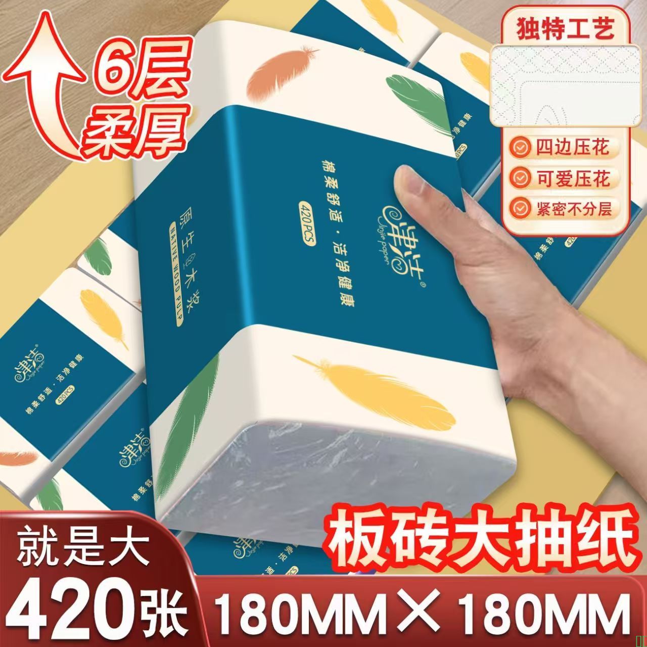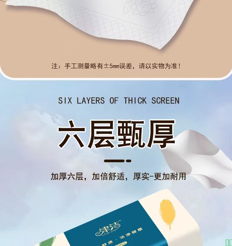 加长加大四边压花大尺寸六层加厚家用学生宿舍面巾纸厕纸手纸抽纸