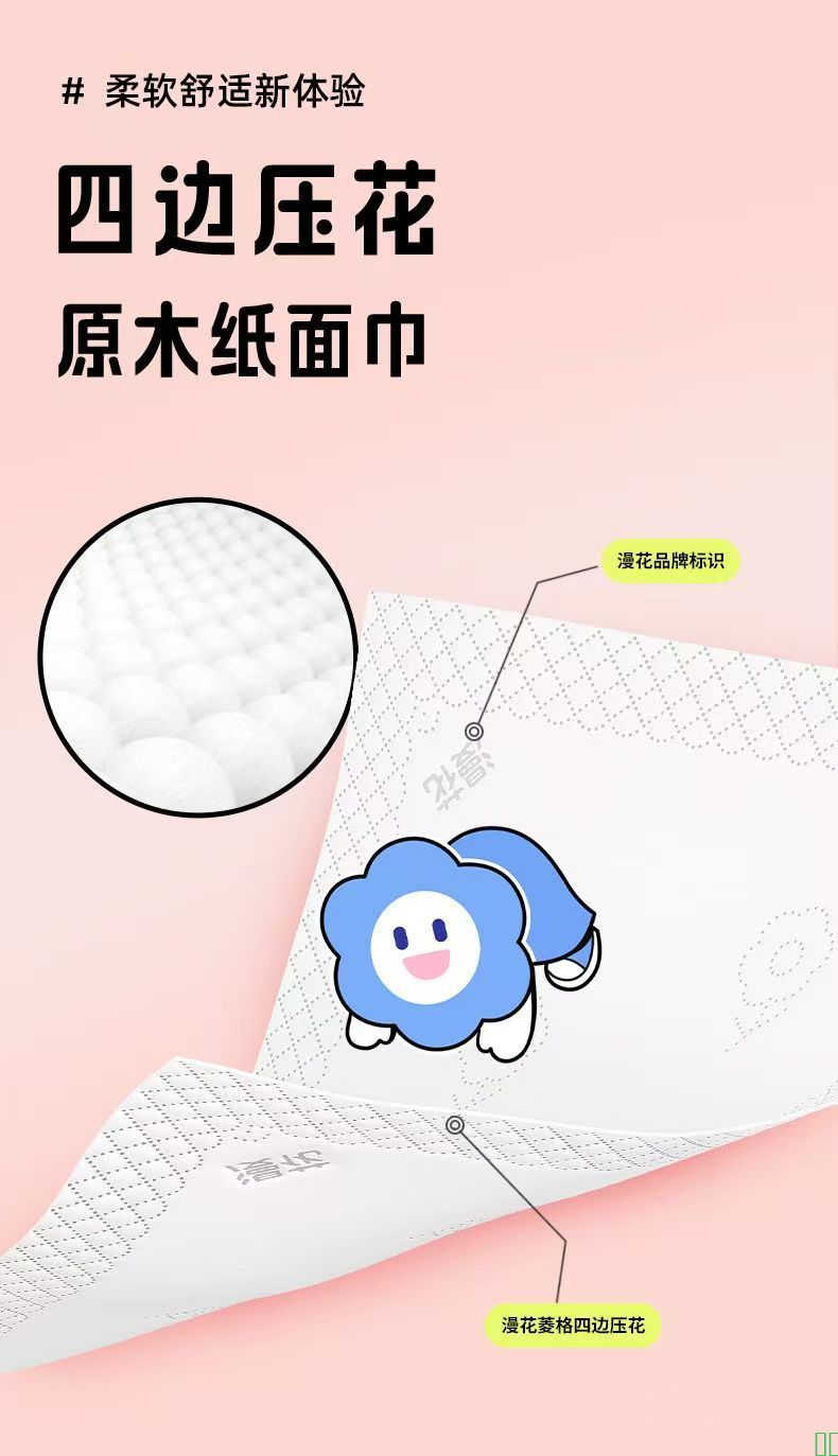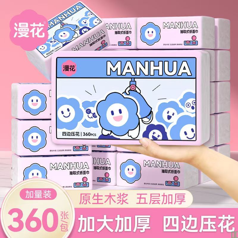 漫花抽纸家用四边压花加厚餐巾纸整箱批发面巾纸学生宿舍卫生纸巾