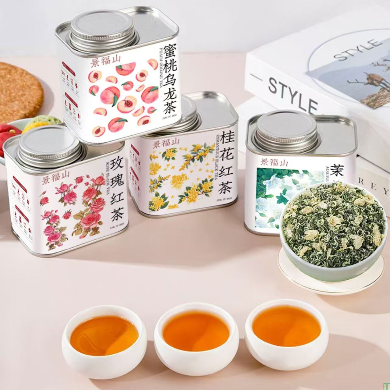 景福山 四大花果茶茉莉花茶玫瑰红茶桂花红茶蜜桃乌龙飘雪金骏眉