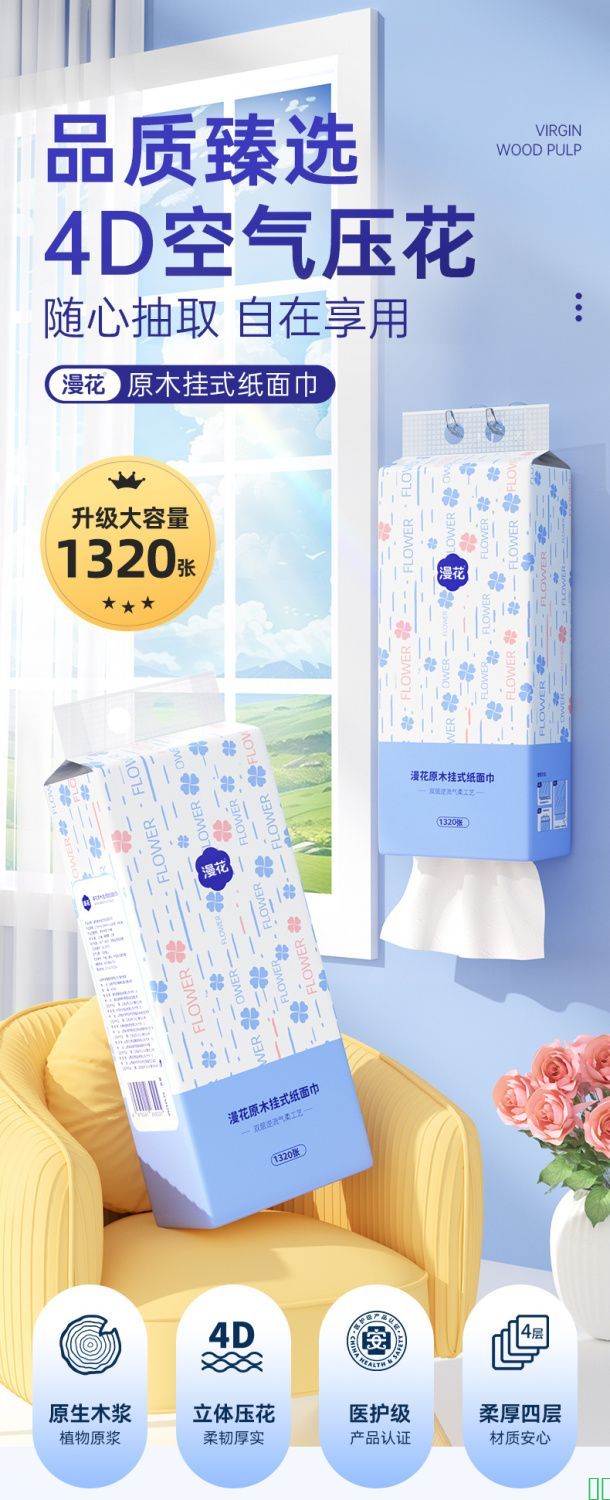 漫花提挂式抽纸悬挂抽取式卫生纸家用擦手厕纸大包装平板卫生纸巾