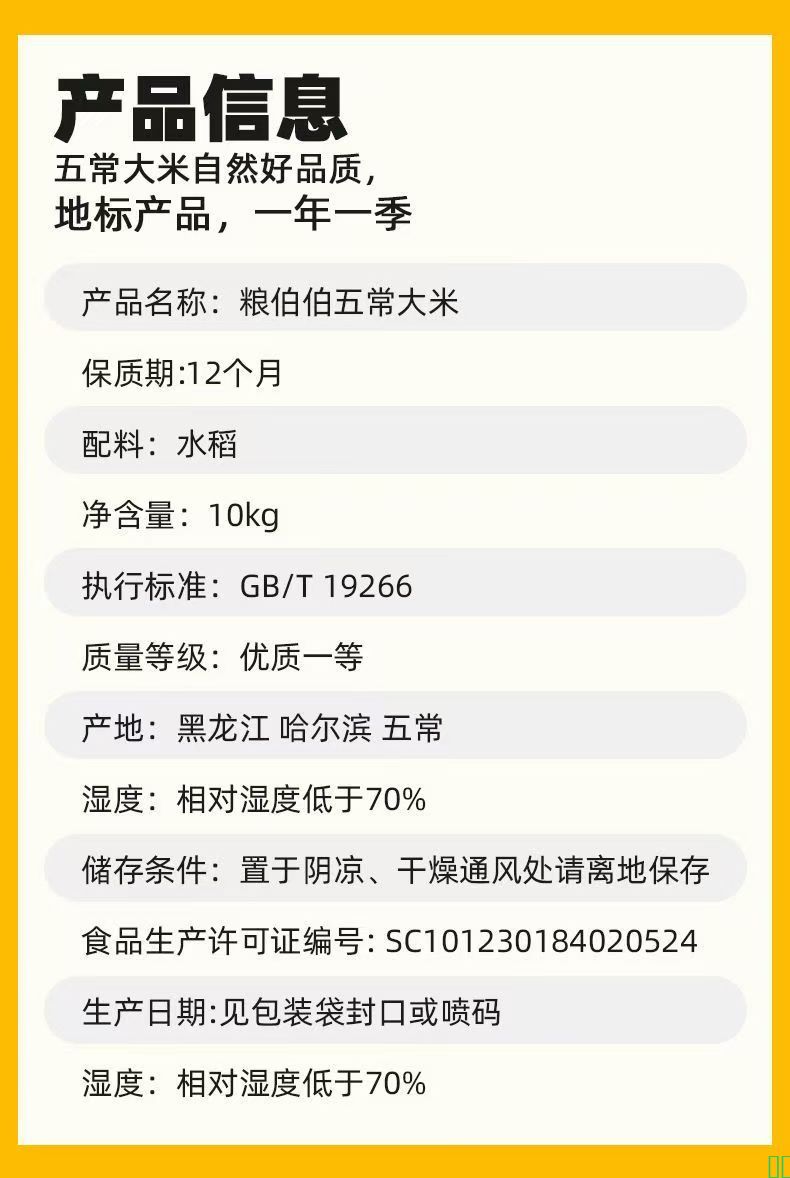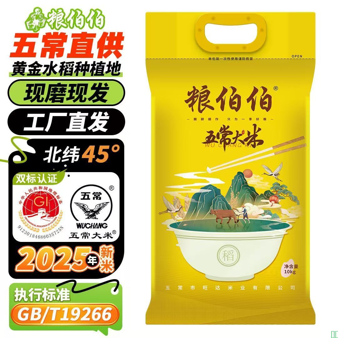 粮伯伯五常大米19266东北大米25年当季现磨新米10kg批发20斤