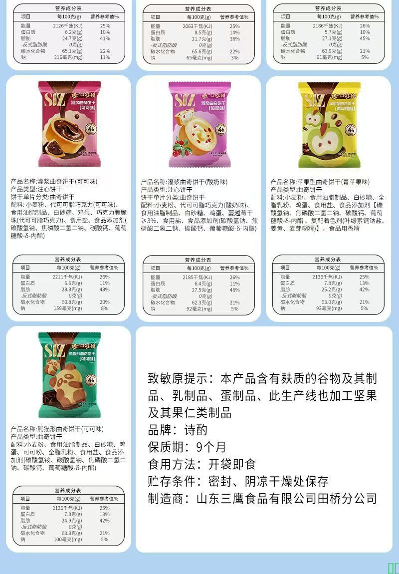 诗酌灌浆曲奇挞壳饼干饼干曲奇混合装儿童营养早餐代餐解馋小零食