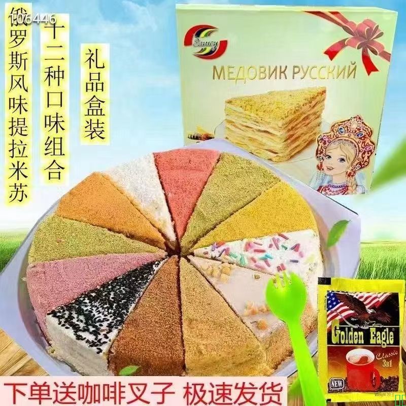 俄罗斯正宗风味12拼提拉米苏千层蜂蜜奶油蛋糕甜品