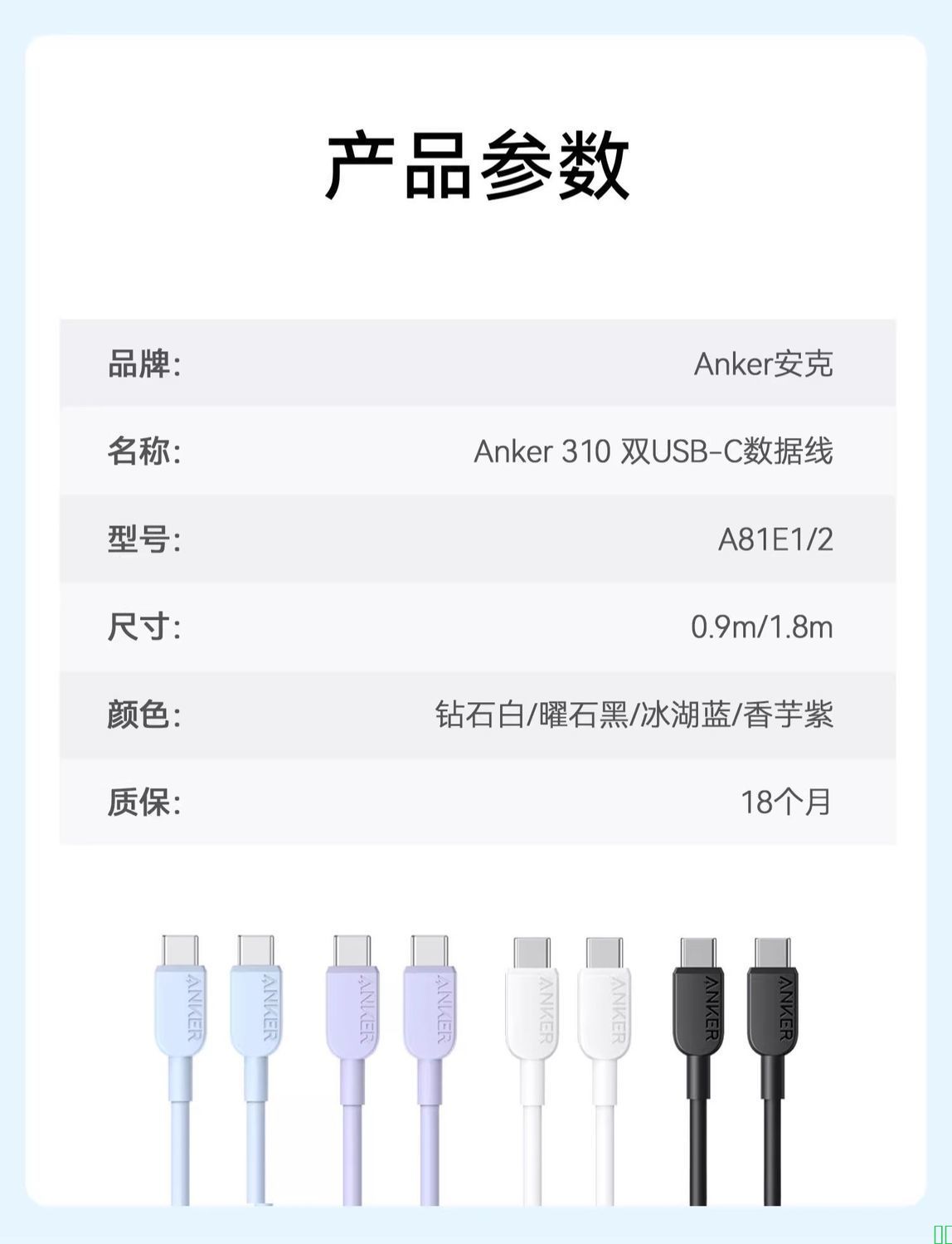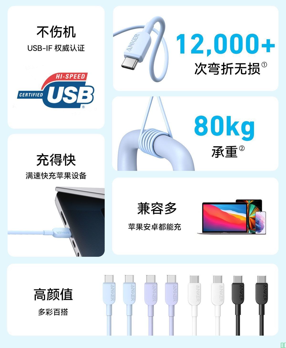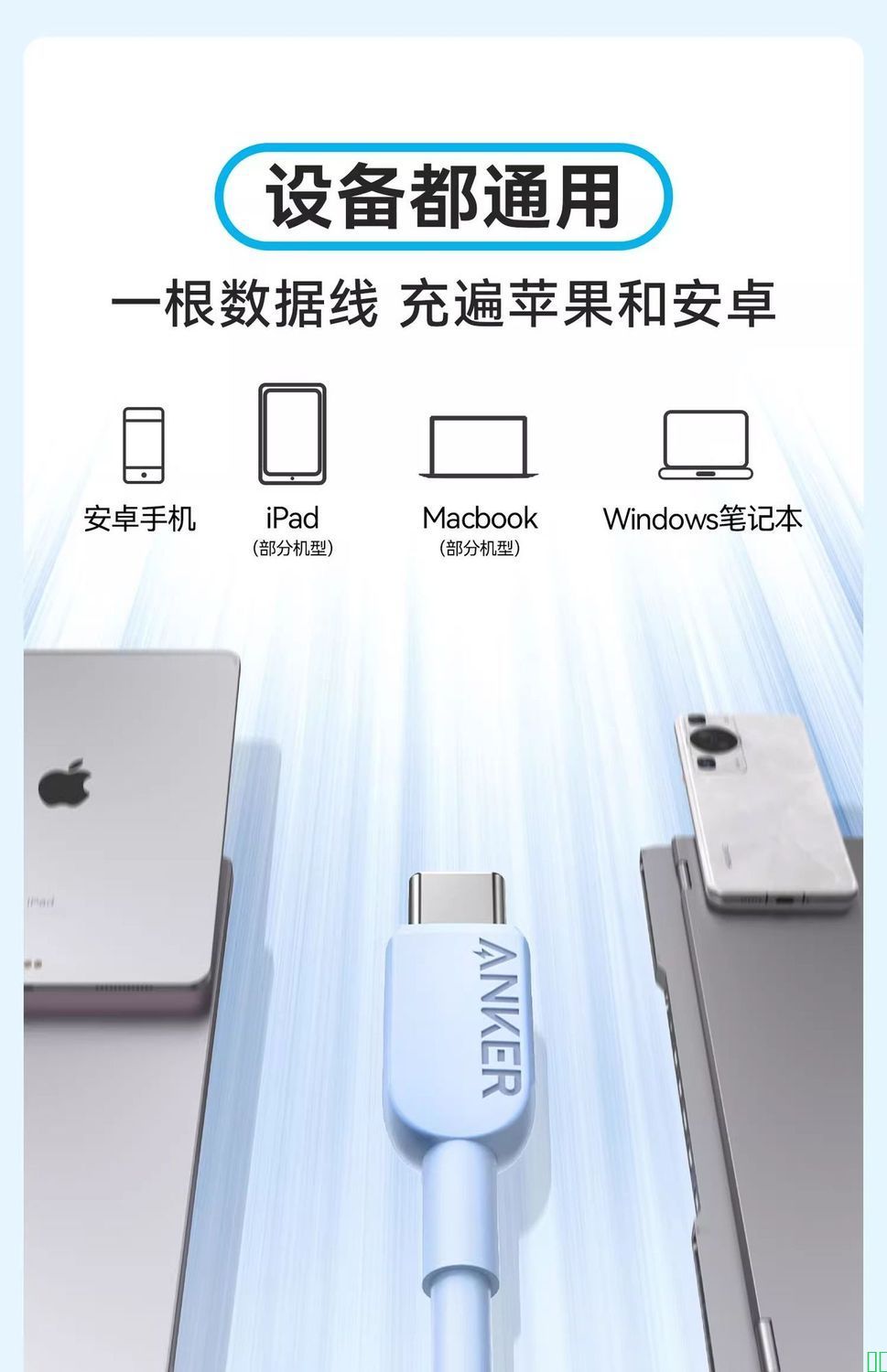 Anker安克充电线双typec充电器线ctoc笔记本安卓