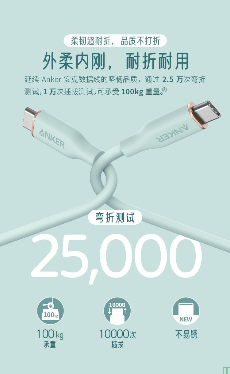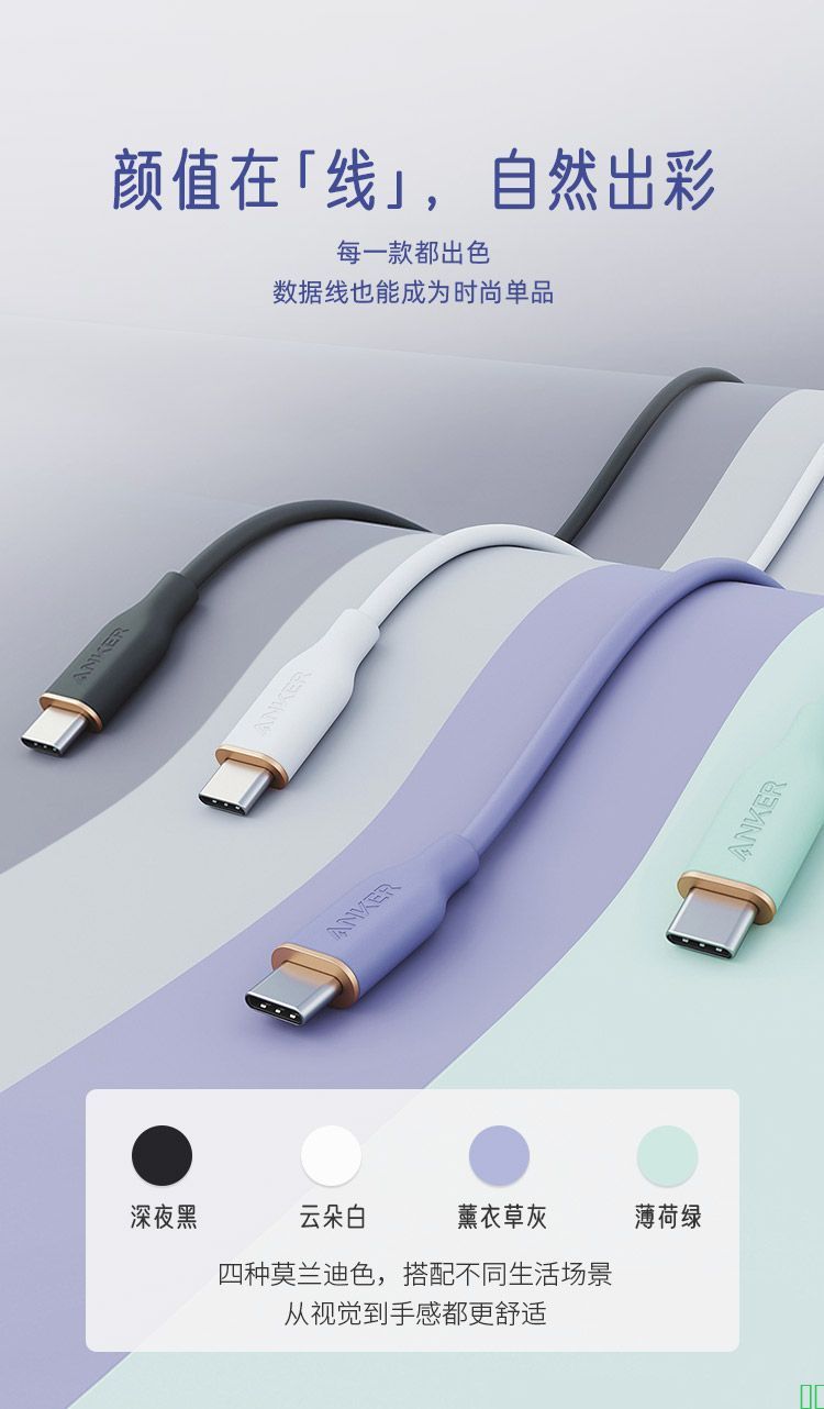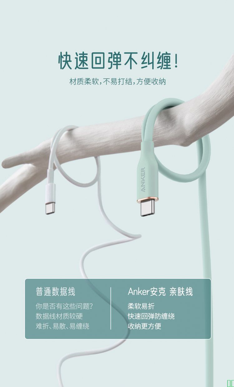 Anker安克数据线双typeC笔记本亲肤ctoc快充线双USB C