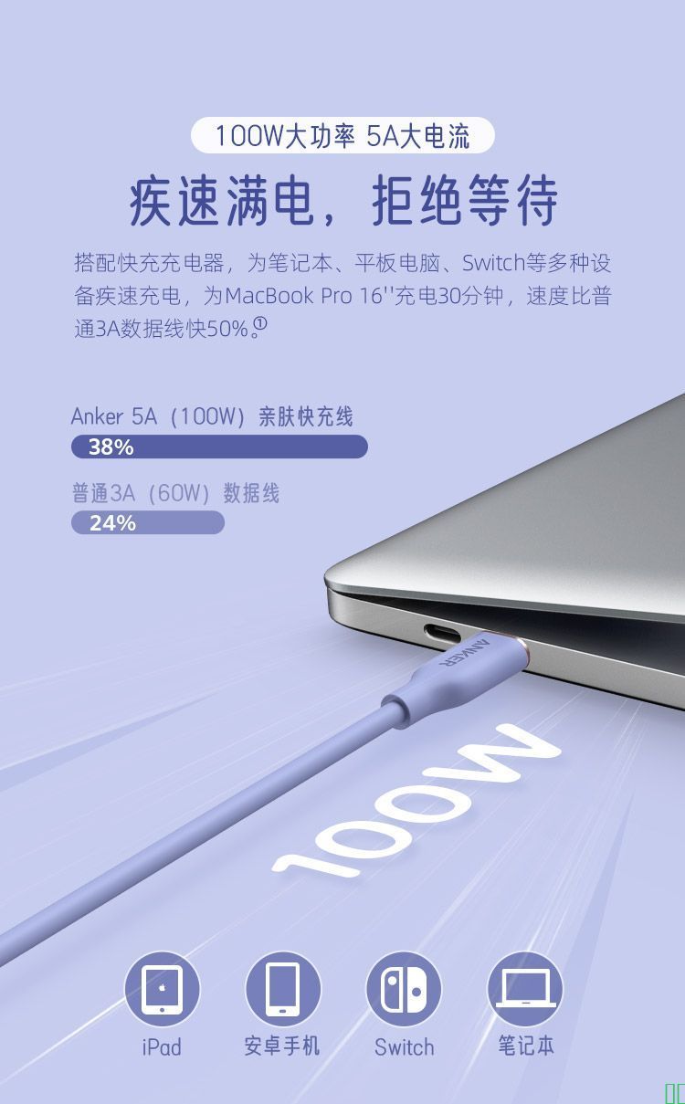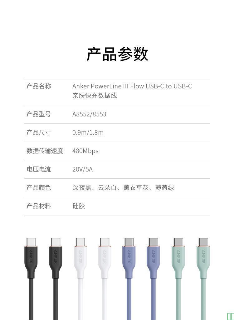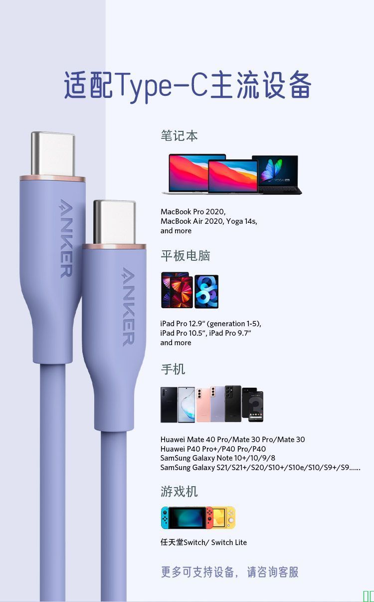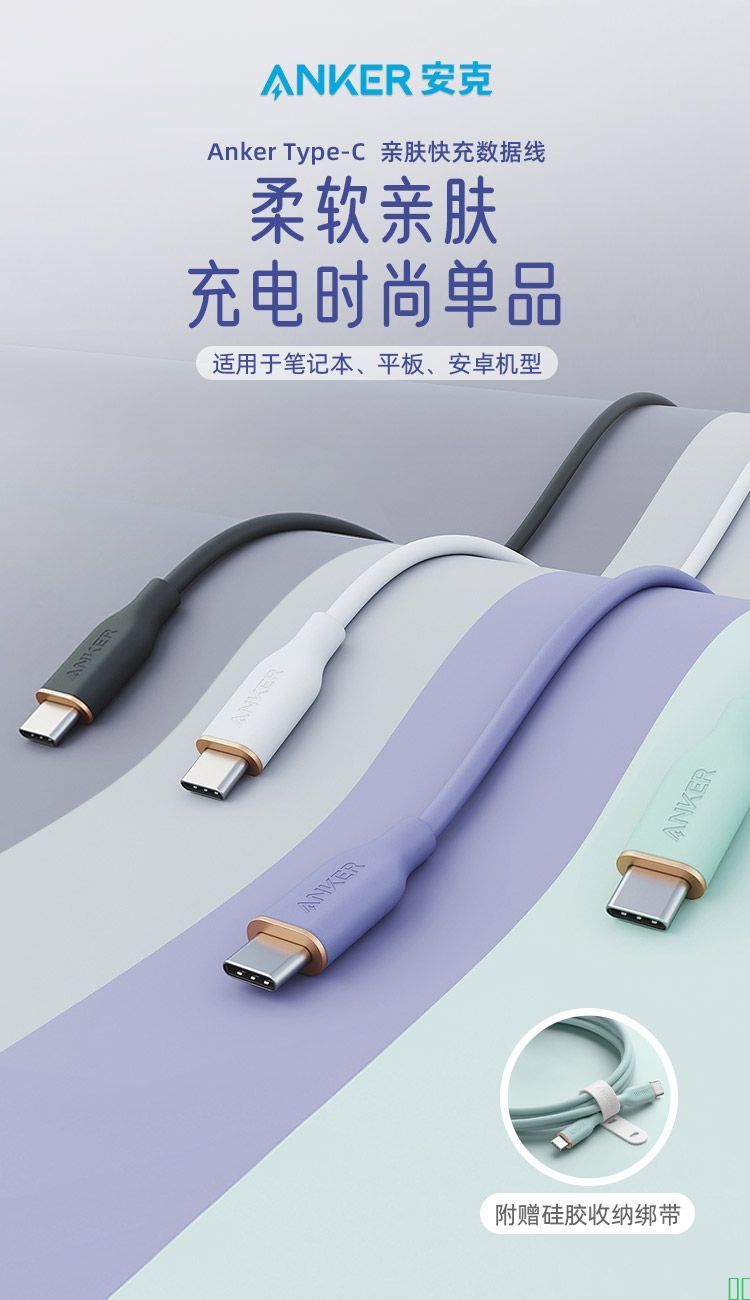 Anker安克数据线双typeC笔记本亲肤ctoc快充线双USB C