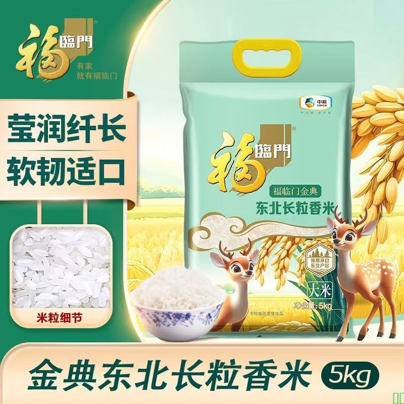 中粮福临门金典东北长粒香米5kg家用东北大米10斤软糯香甜米饭