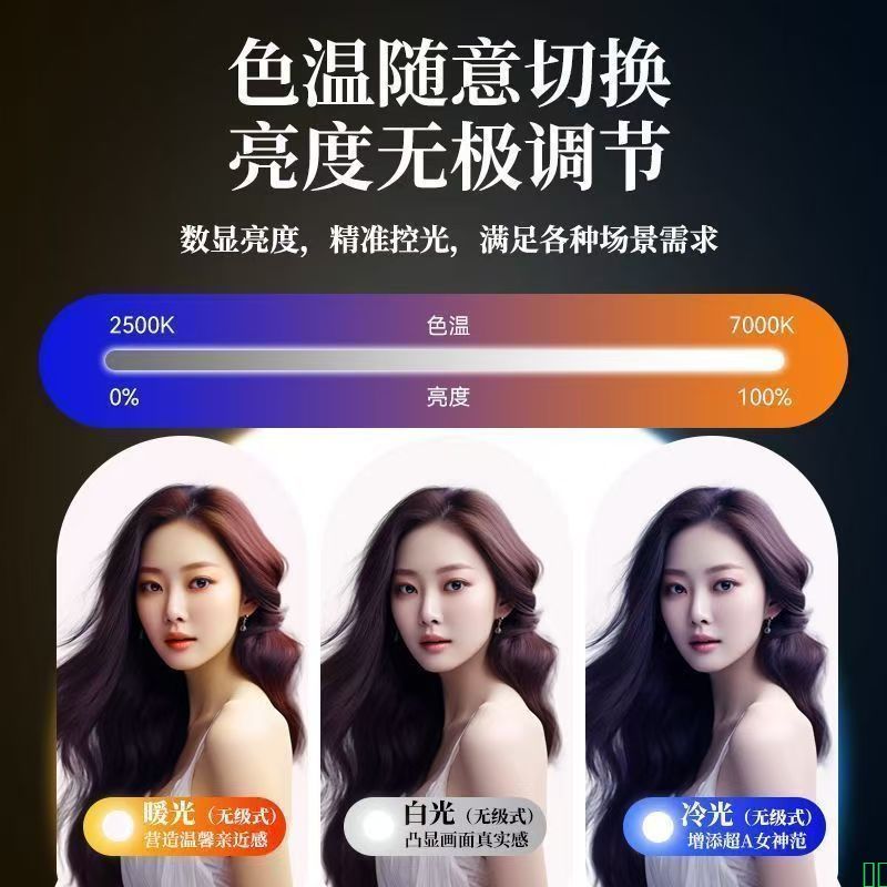 全屏直播补光灯主播美颜专用桌面美妆面部打光led摄影直播间面光