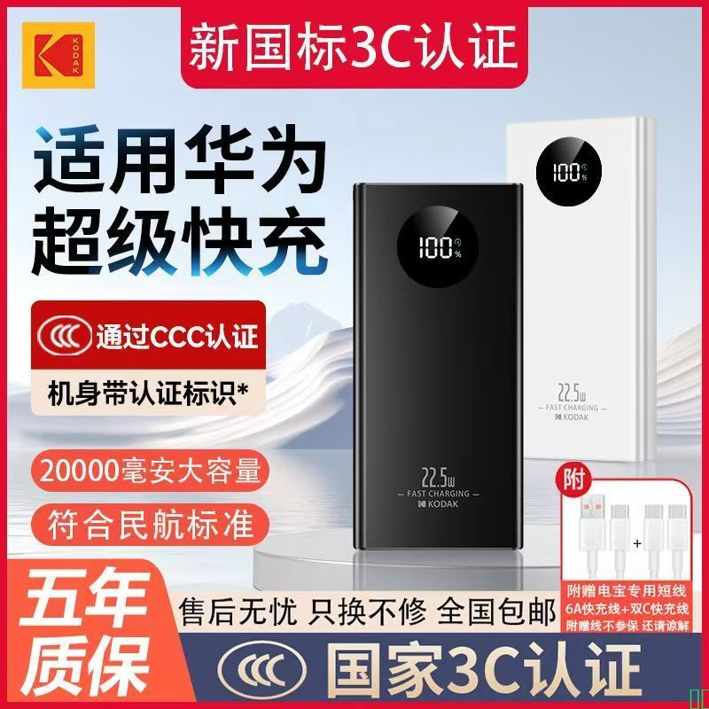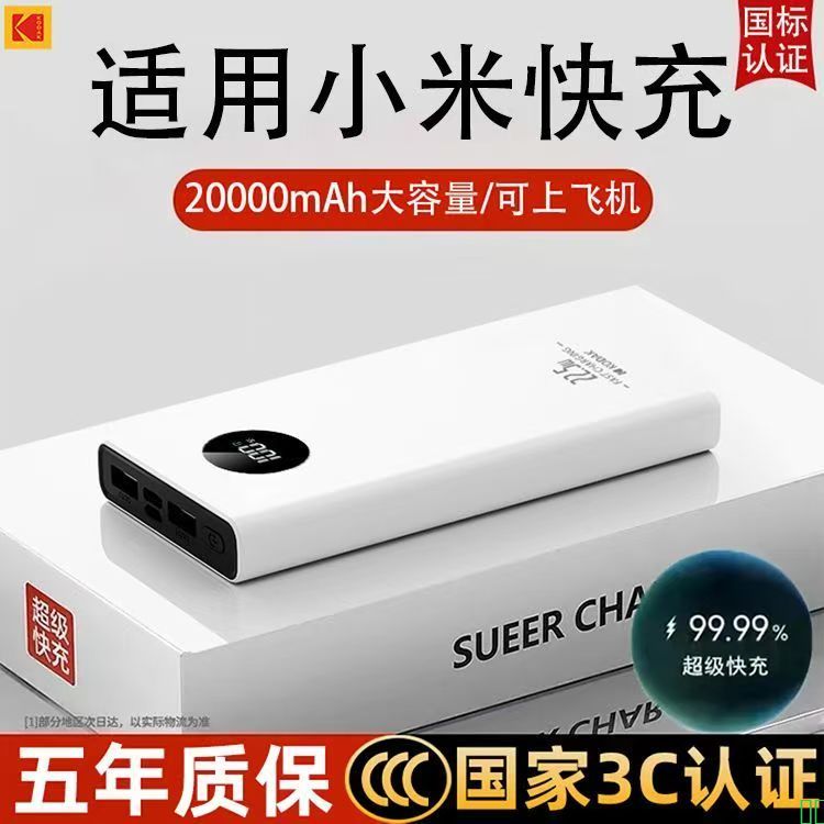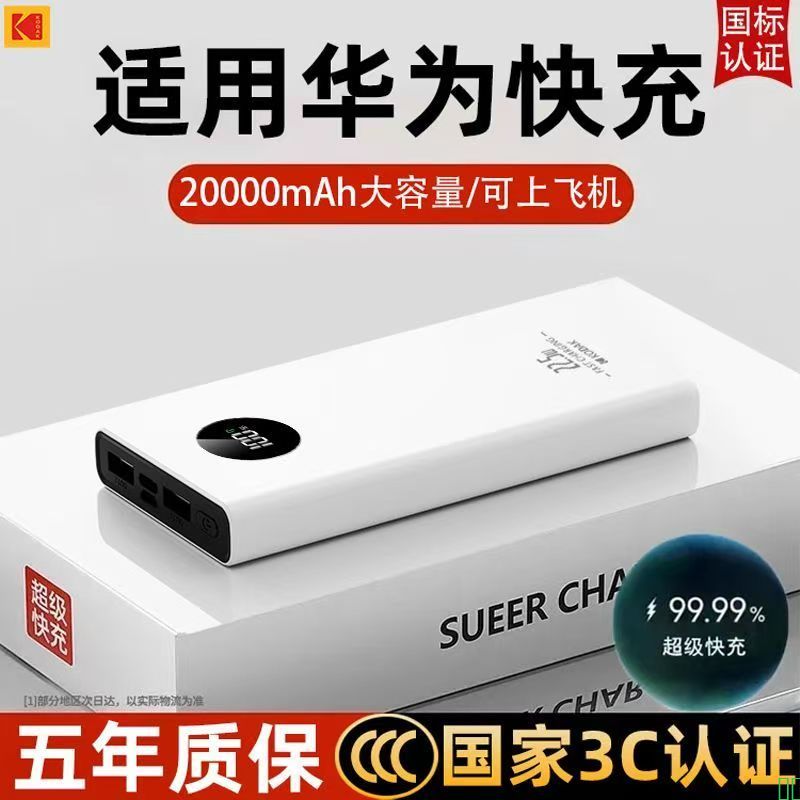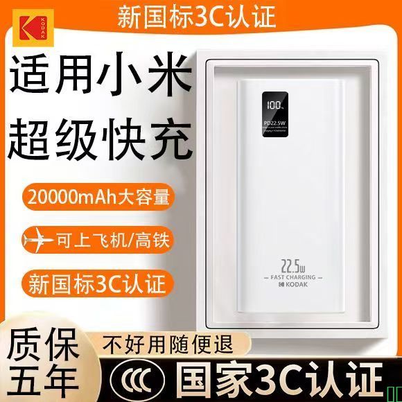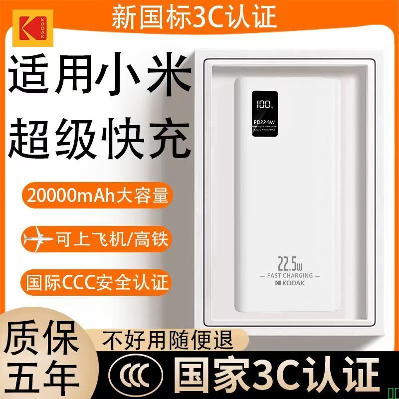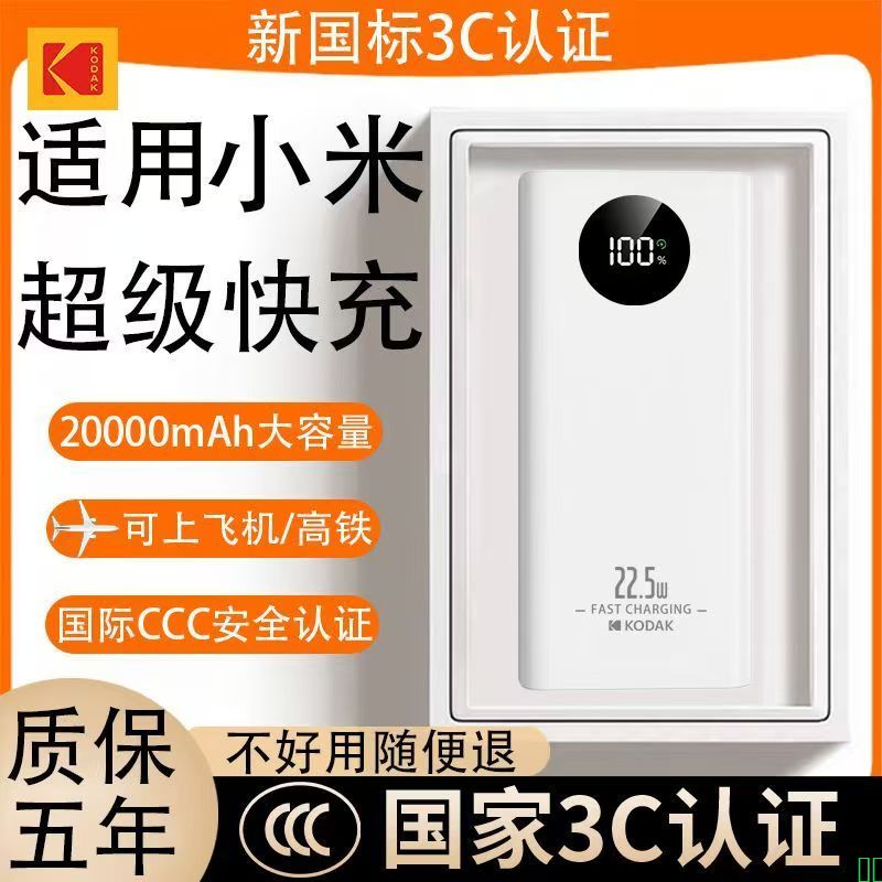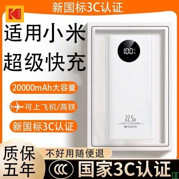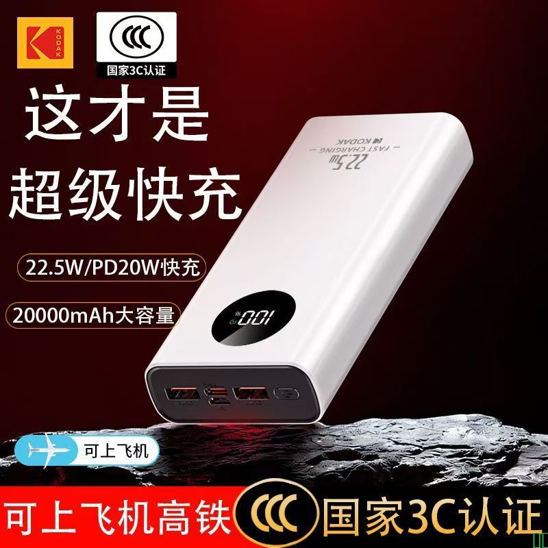 【3C认证可上飞机]柯达20000毫安充电宝小米华为苹果通用移动电源
