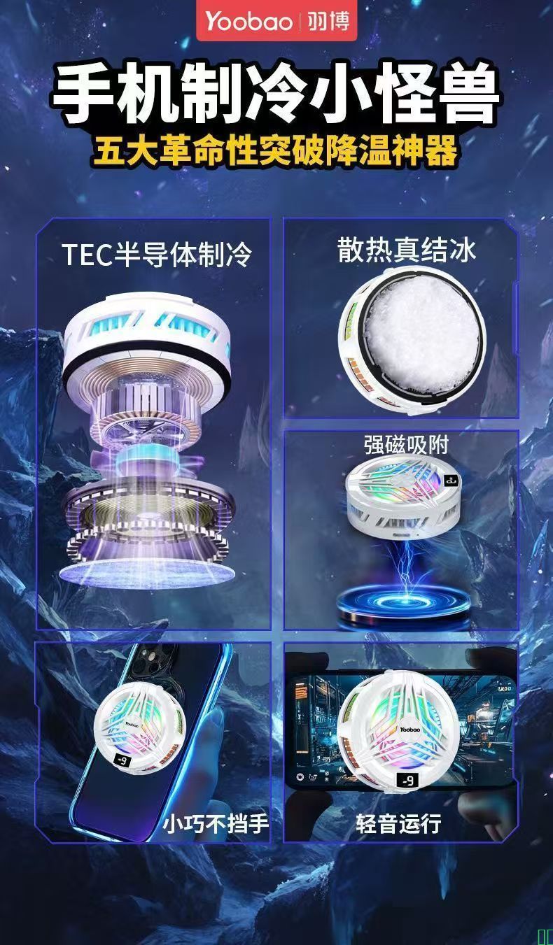 羽博磁吸散热器手机半导体电竞制冷结冰降温直播游戏苹果安卓静音
