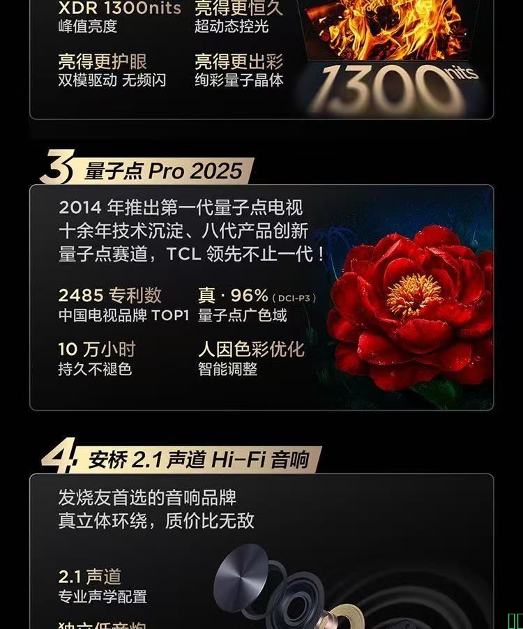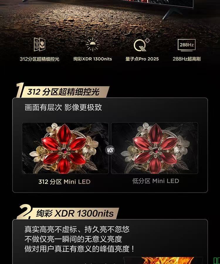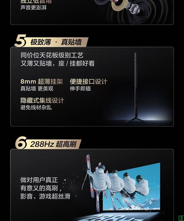 TCL电视75英寸 288Hz高刷 高色域 4+64GB 超薄智能