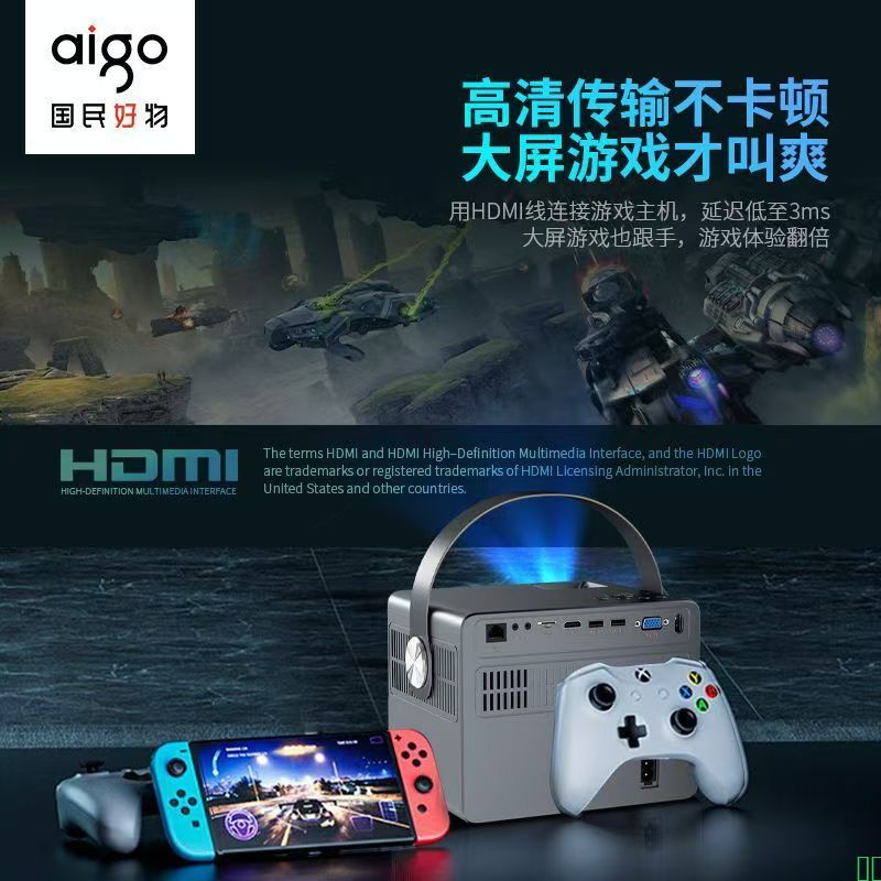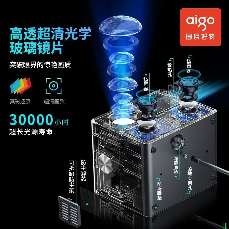 爱国者 H12高清投影仪家庭影院商用智能语音双重护眼便携式投影机