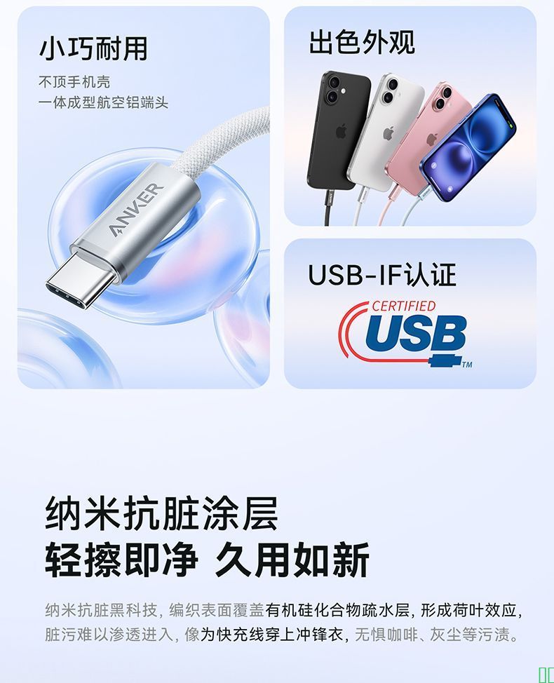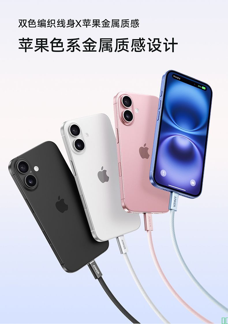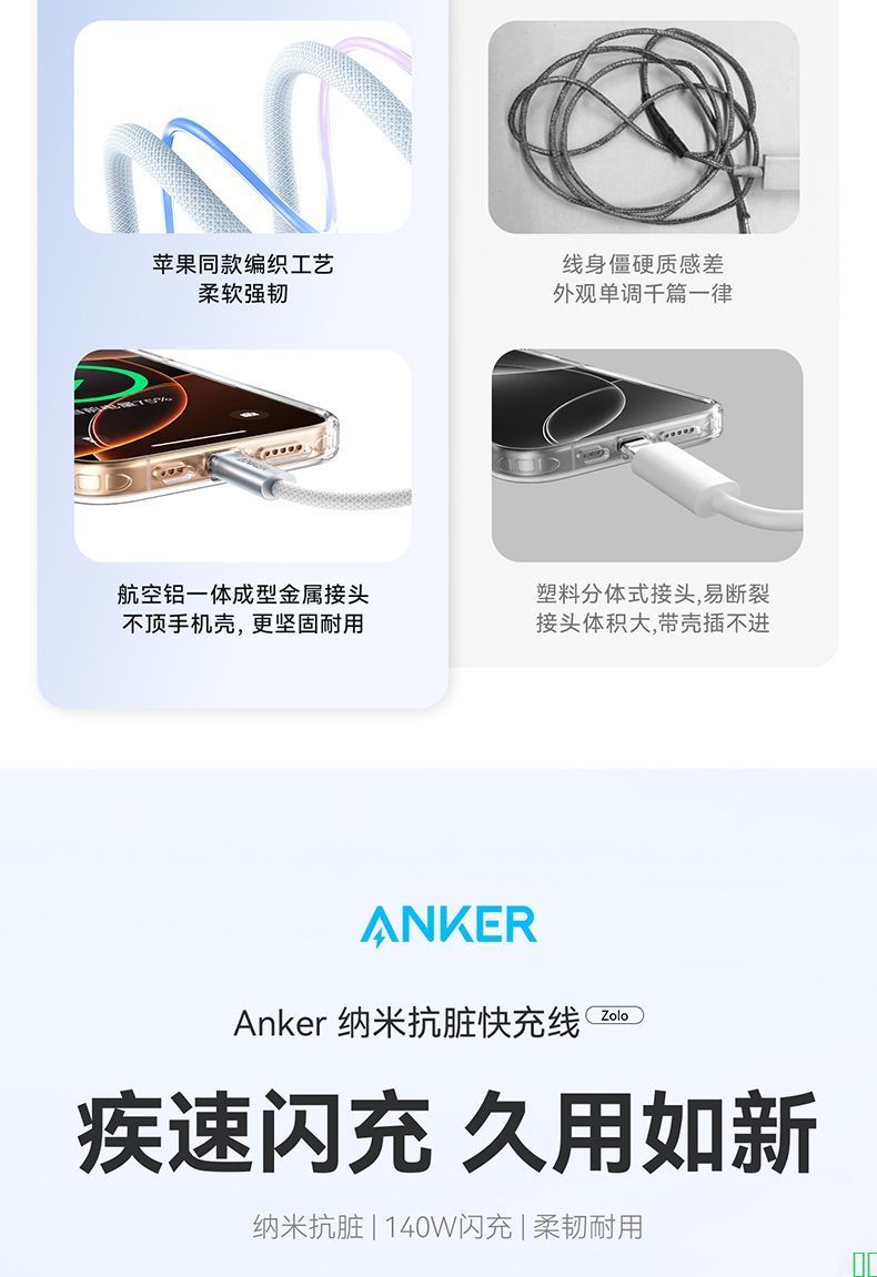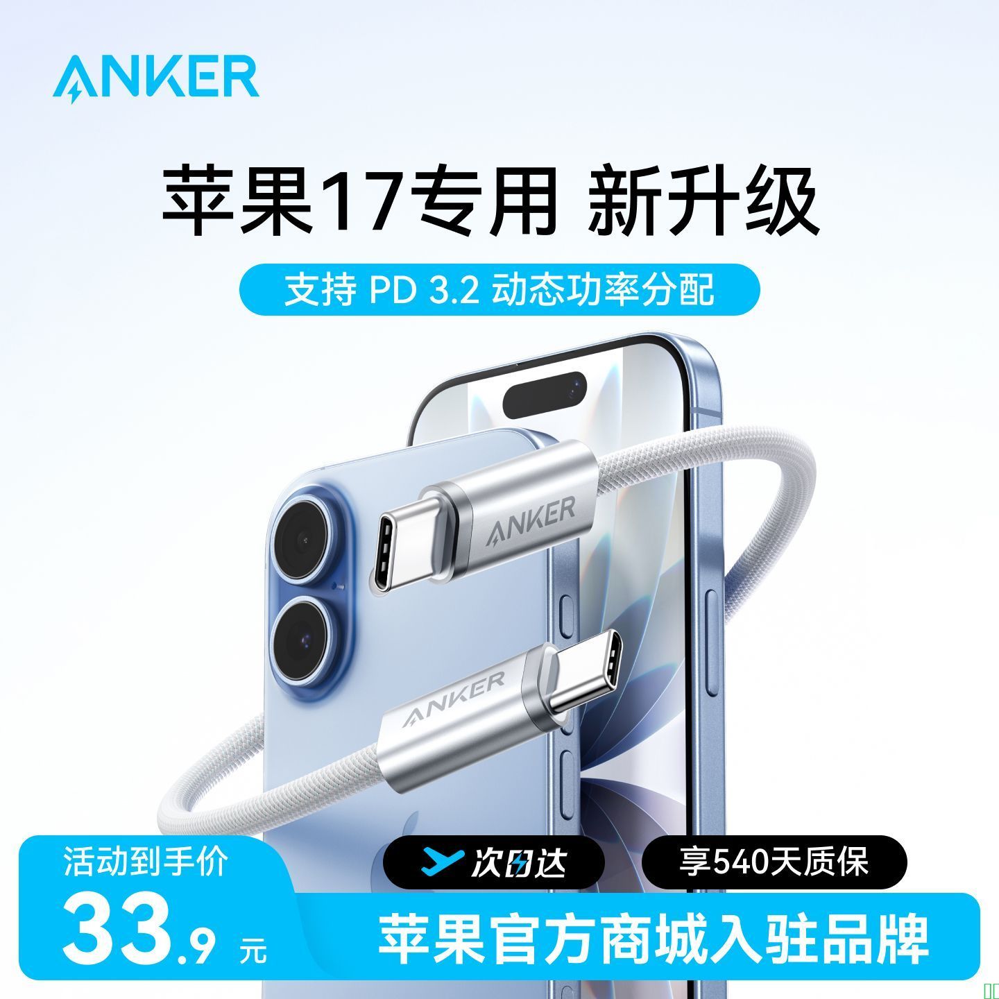 Anker安克iPhone17ProMax数据线手机140W快充苹果16双typec接口