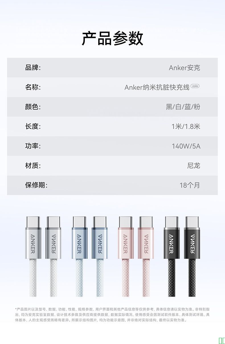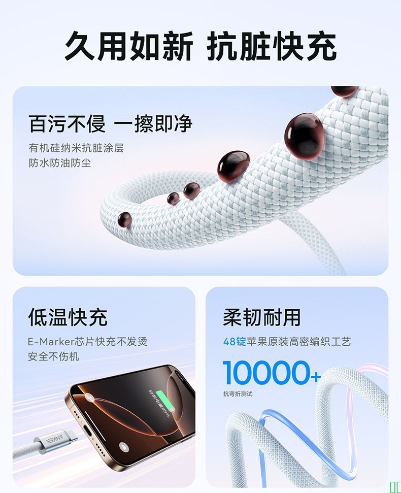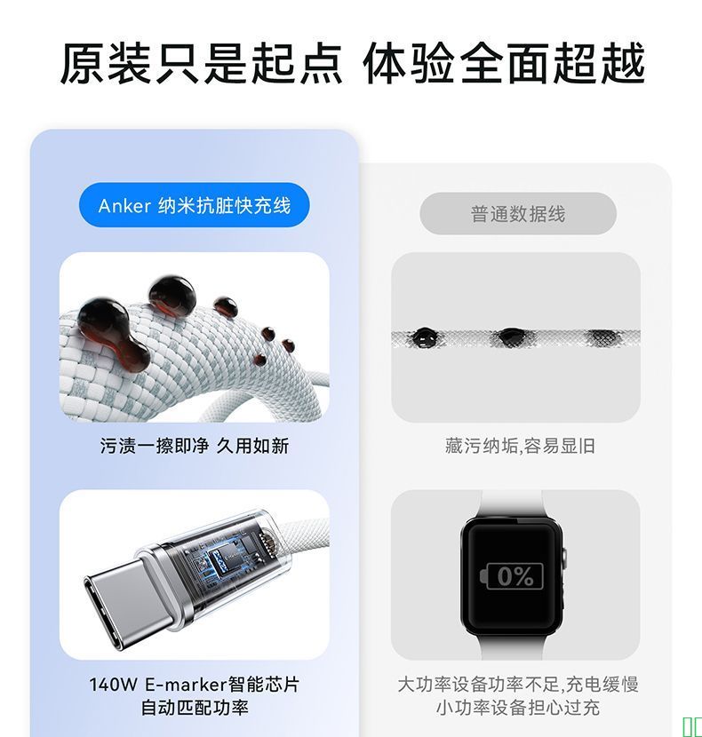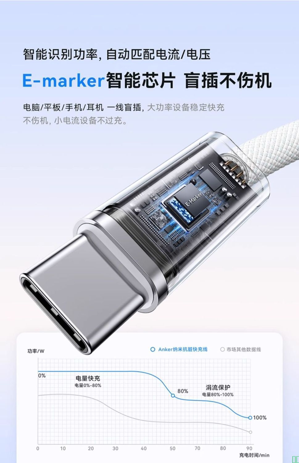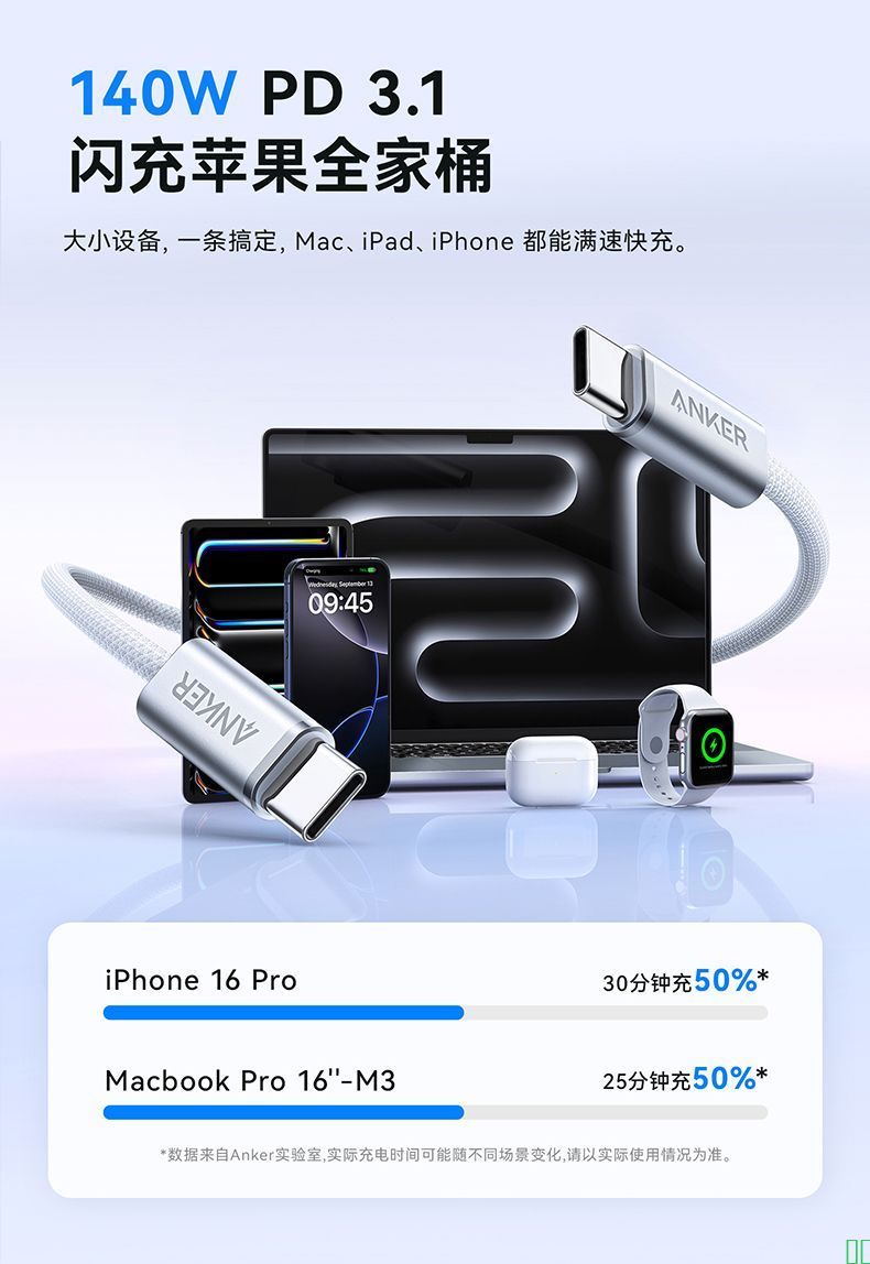 Anker安克iPhone17ProMax数据线手机140W快充苹果16双typec接口