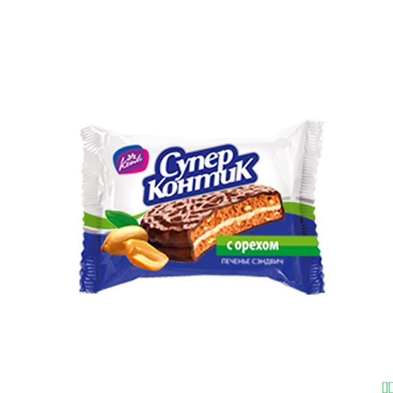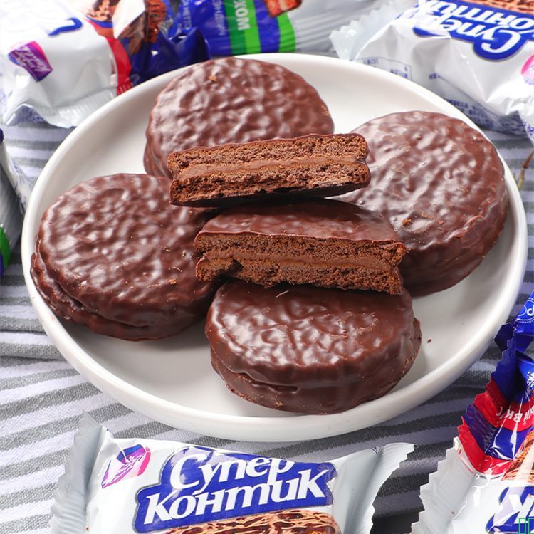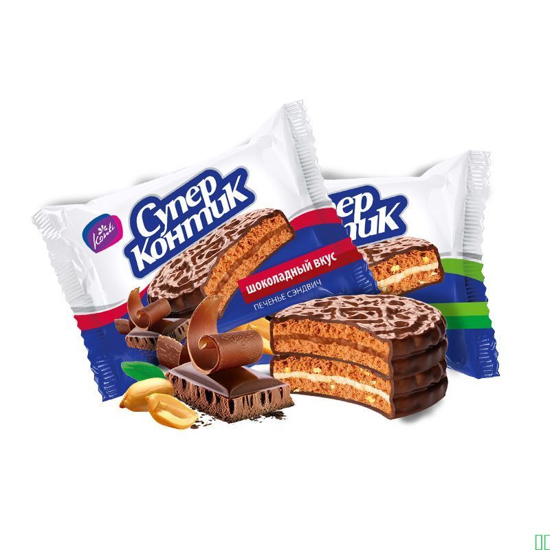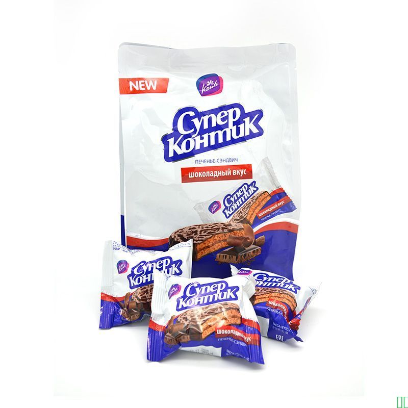 Konti俄罗斯原装进口食品巧克力花生榛子三明治夹心饼干蓝饼干
