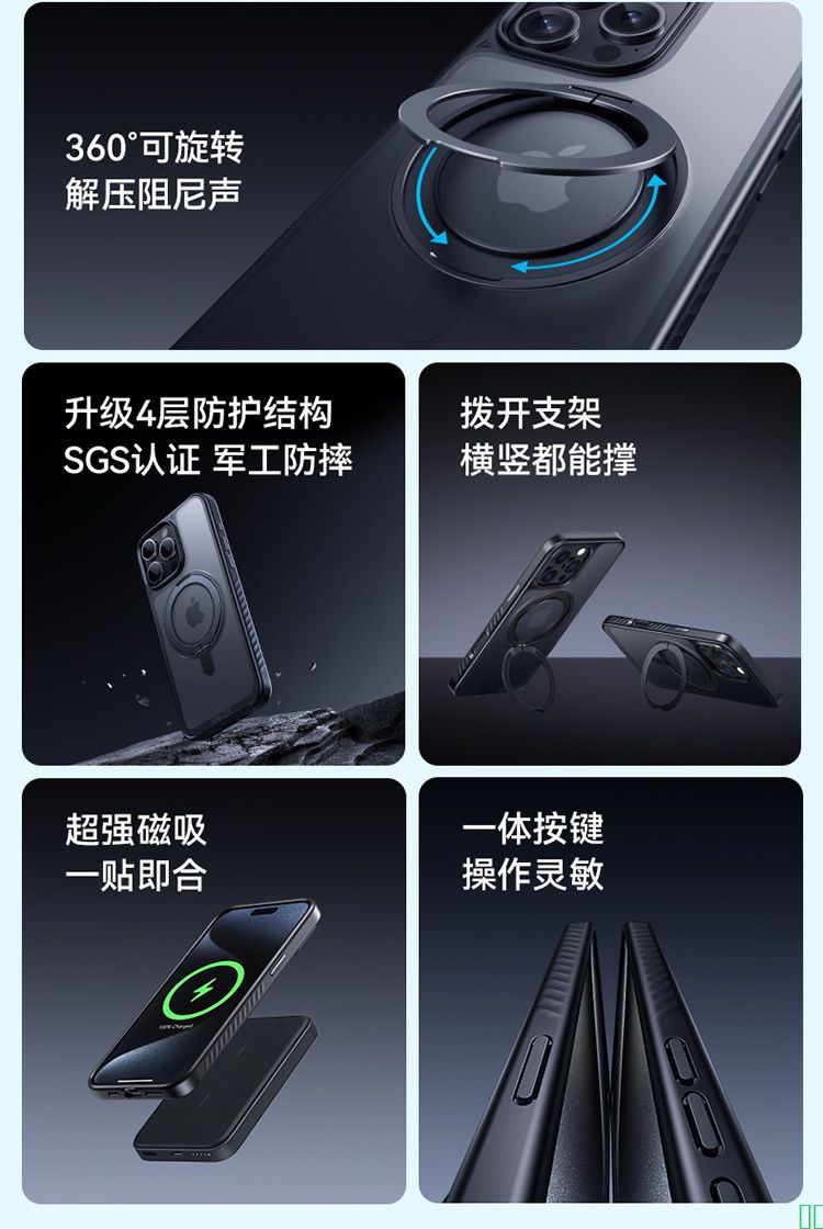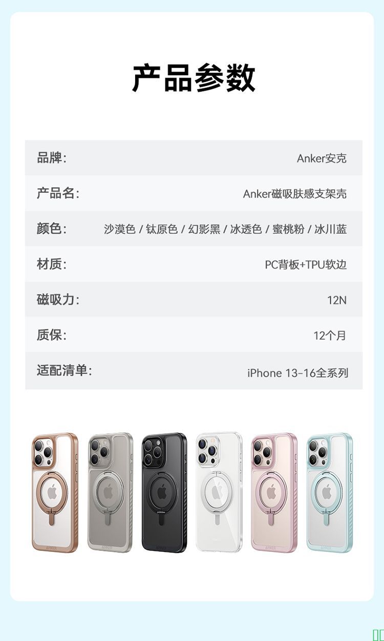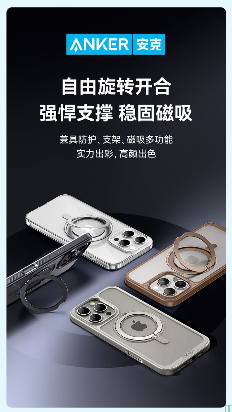 Anker安克苹果16ProMax手机壳新款磁吸带支架壳iPhone15/14保护壳