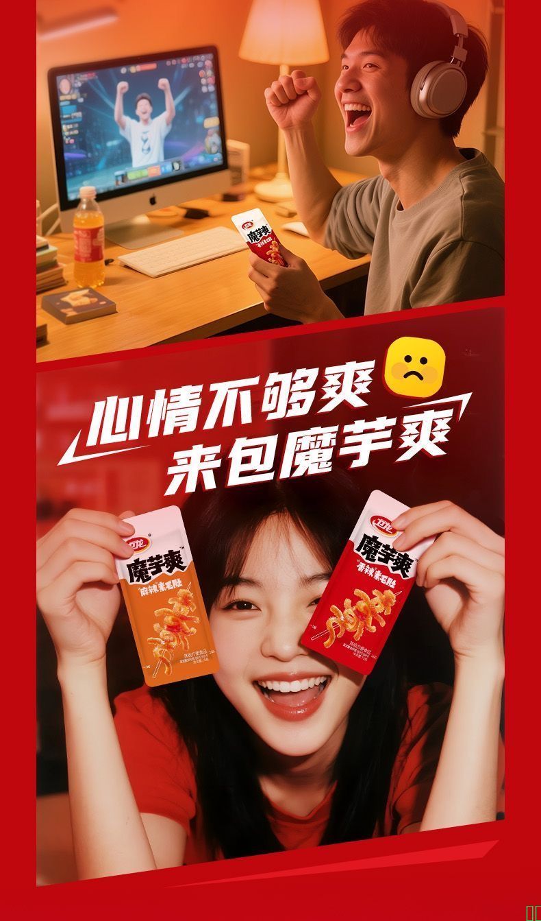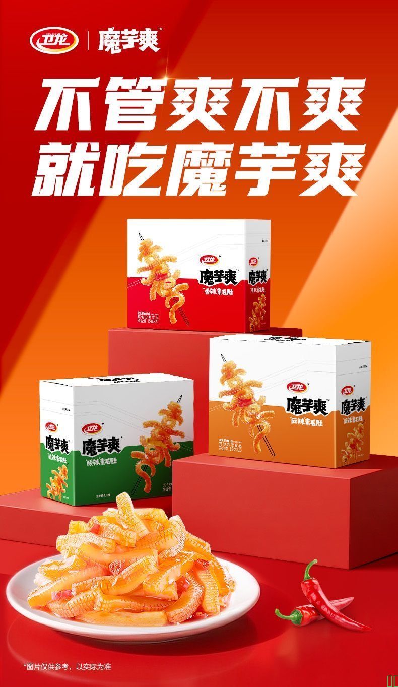 卫龙魔芋爽20包/盒+12小包素毛肚素肉辣条豆腐干解馋小零食大礼包