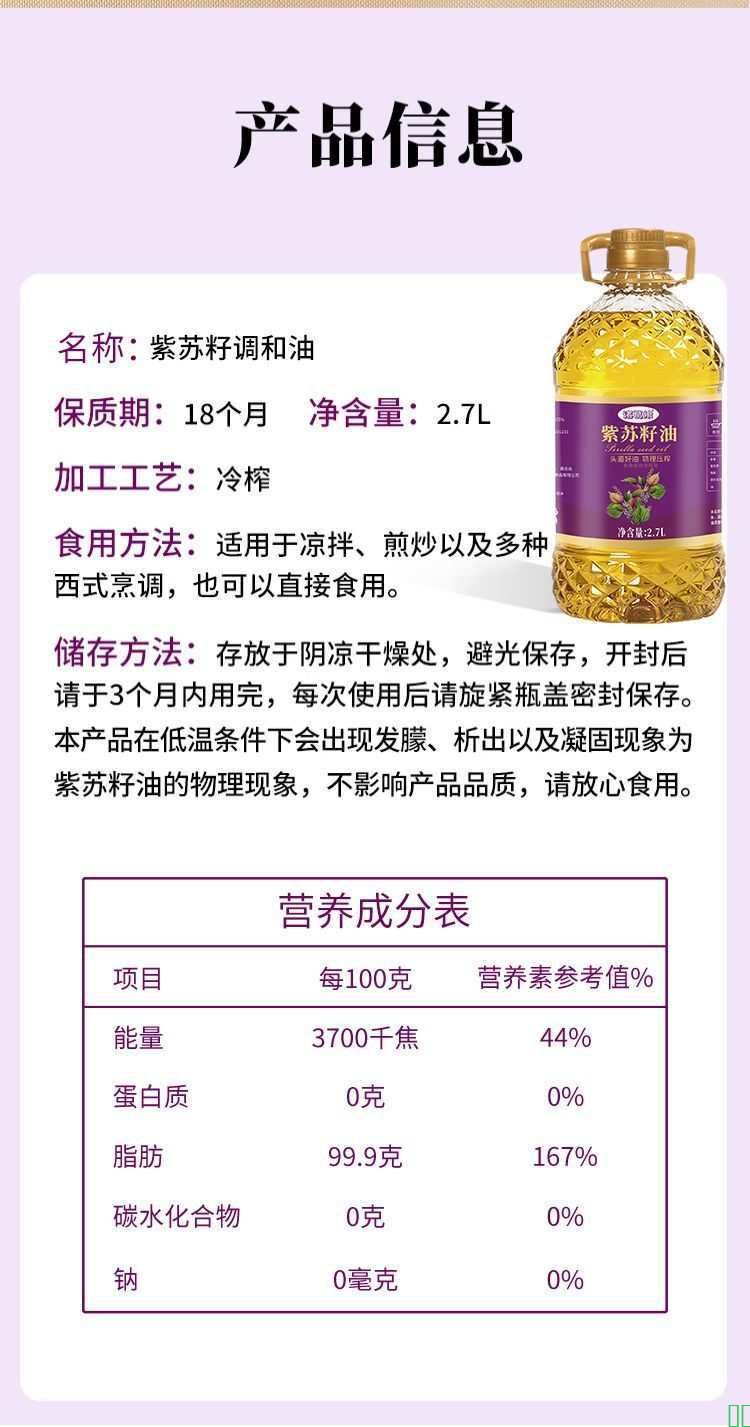 【新品促销】大桶装一级压榨紫苏籽油家用食用油健康炒菜正品