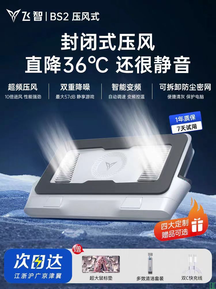 【首发新品】飞智BS2/BS2Pro压风式散热器笔记本散热底座电脑散热器静音降噪风扇游戏本专用散热神器涡轮压风