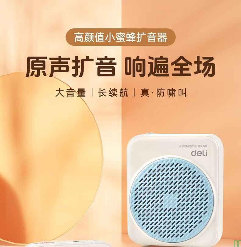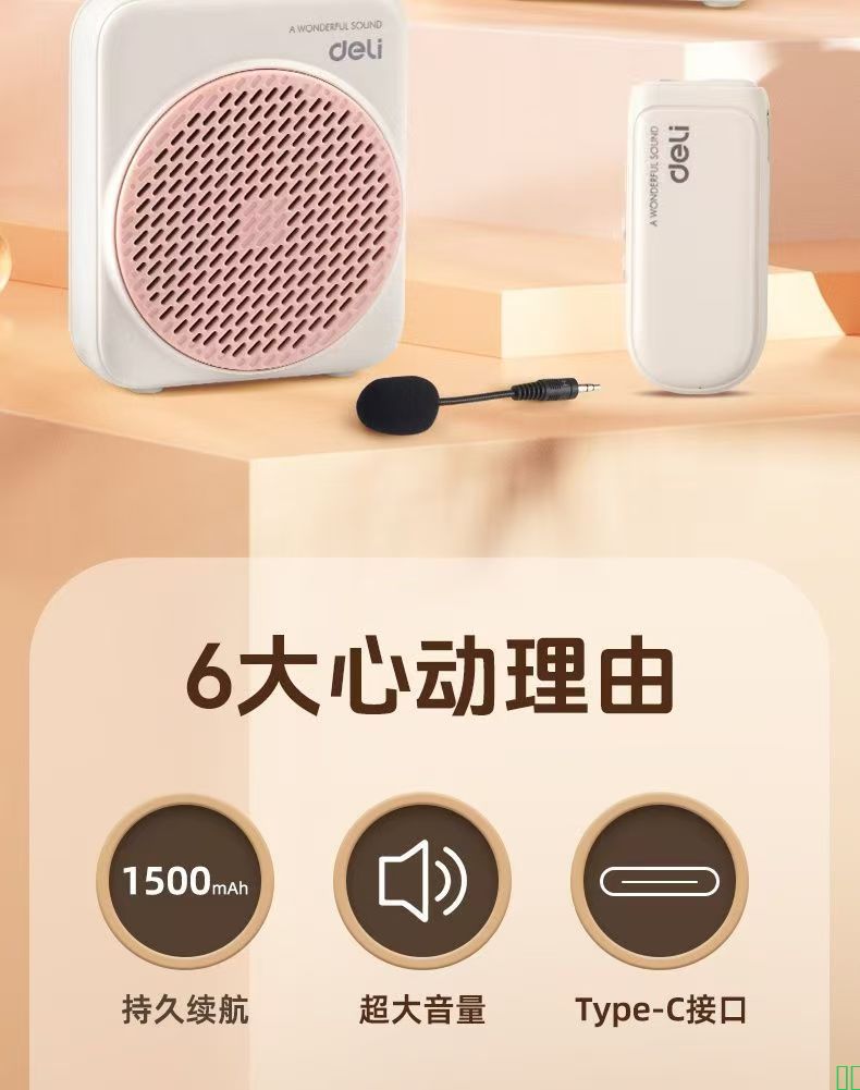 得力小蜜蜂扩音器大音量户外导游喇叭无线领夹式教师专用耳麦克风