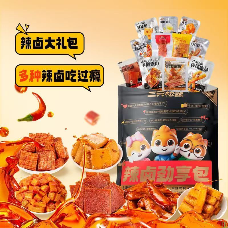 三只松鼠辣卤大礼包30包零食大礼包卤味夜宵出游解馋休闲小吃食品