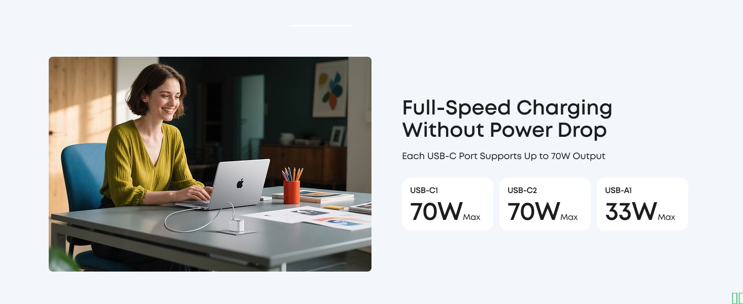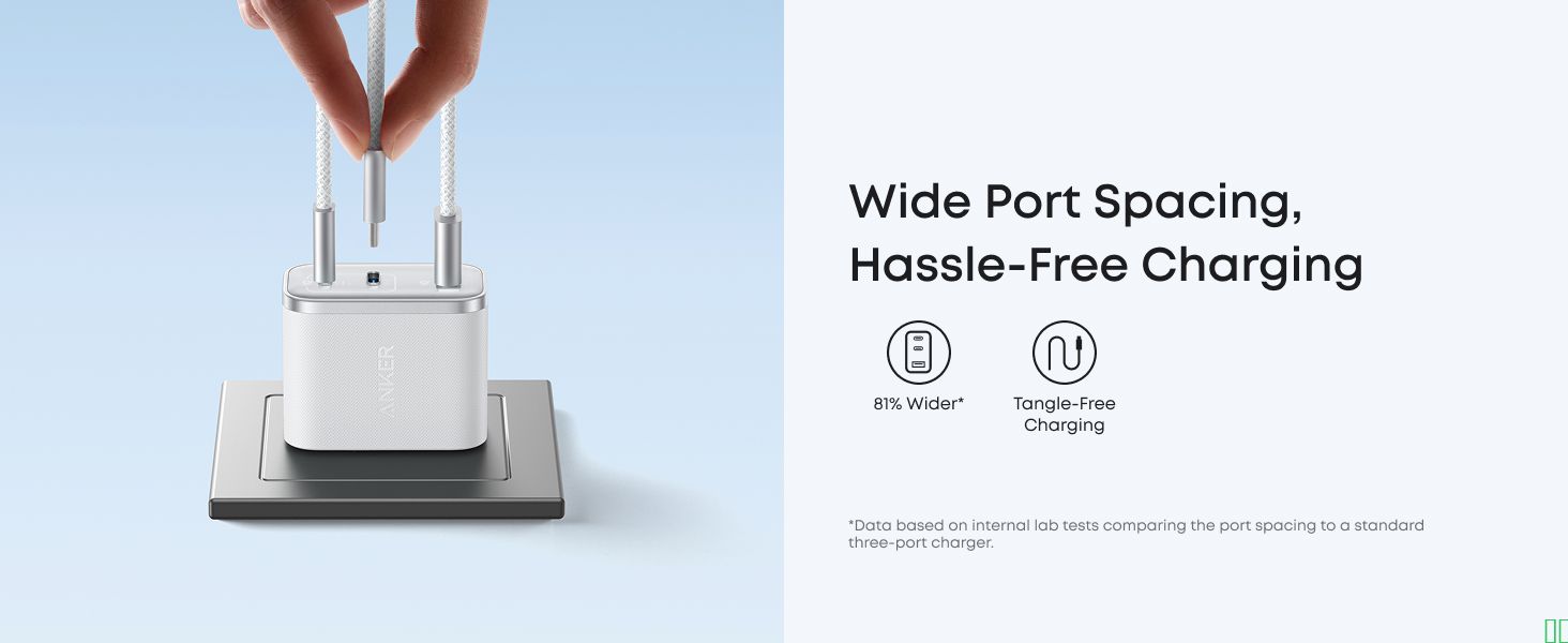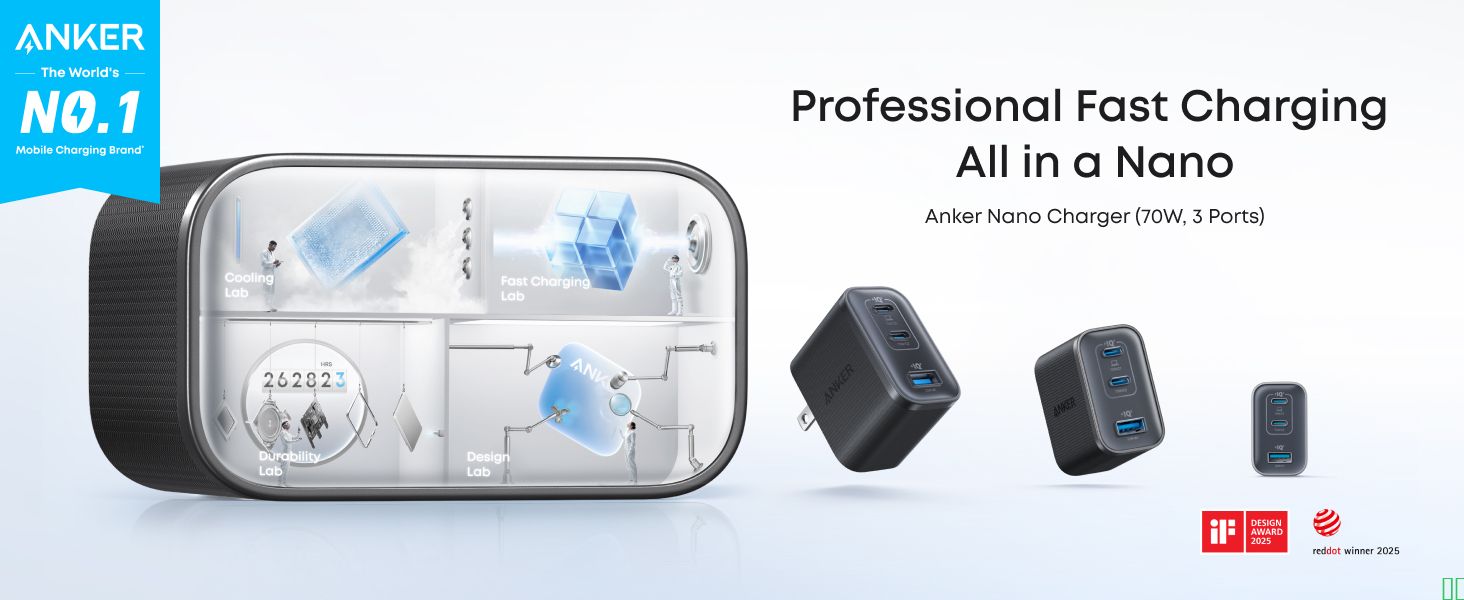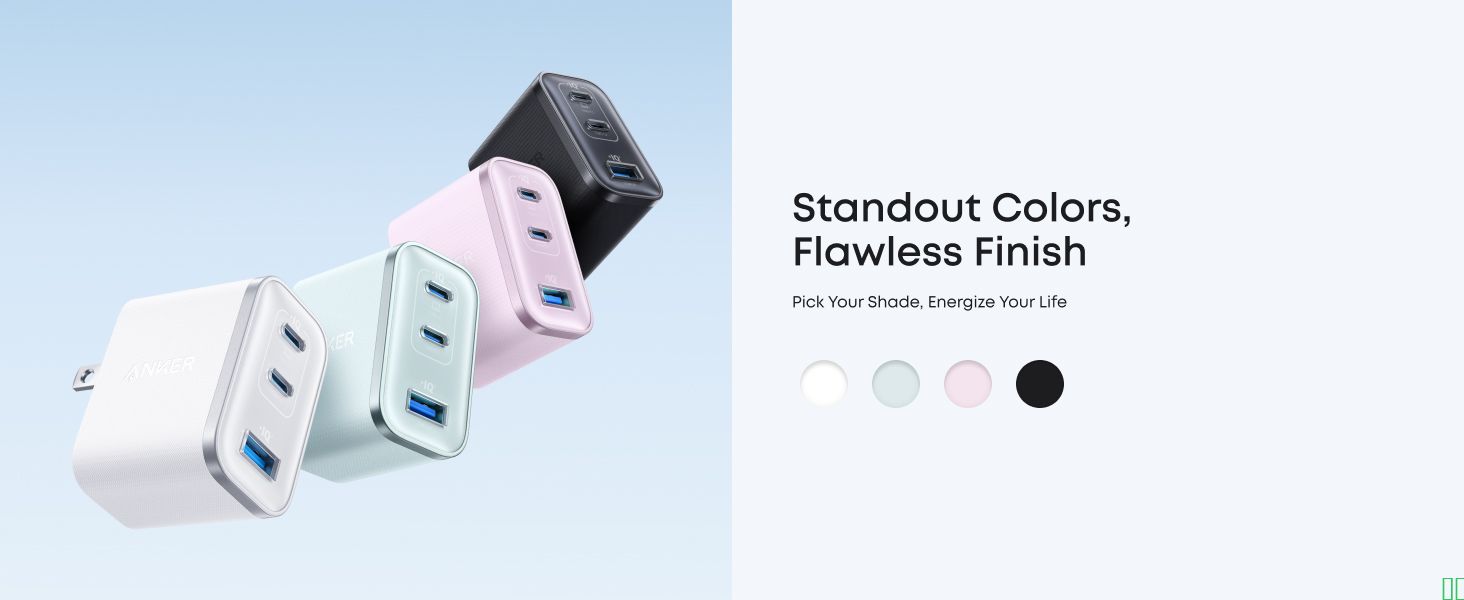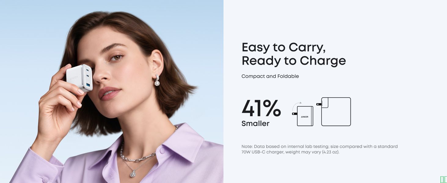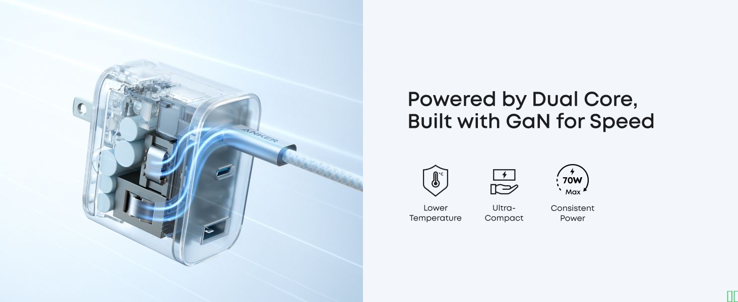 Anker Nano USB C 充电器块,超快 70W 输出 3 端口 C 型充电器,快速充电,小巧时尚