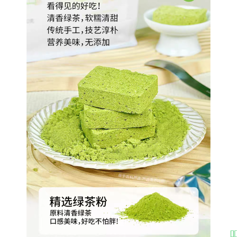 鹰嘴豆绿茶糕代餐轻低食简餐解馋抗饿卡无蔗糖办公室零食脂手工糕