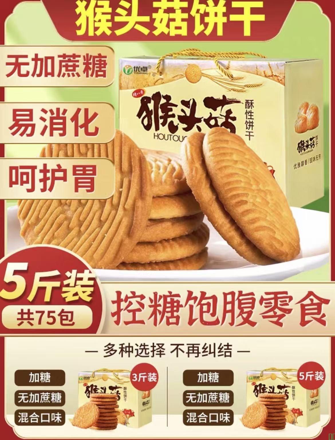 猴头菇猴菇饼干无糖精旗舰店养糖尿人食品零食大全官方专用糖人胃